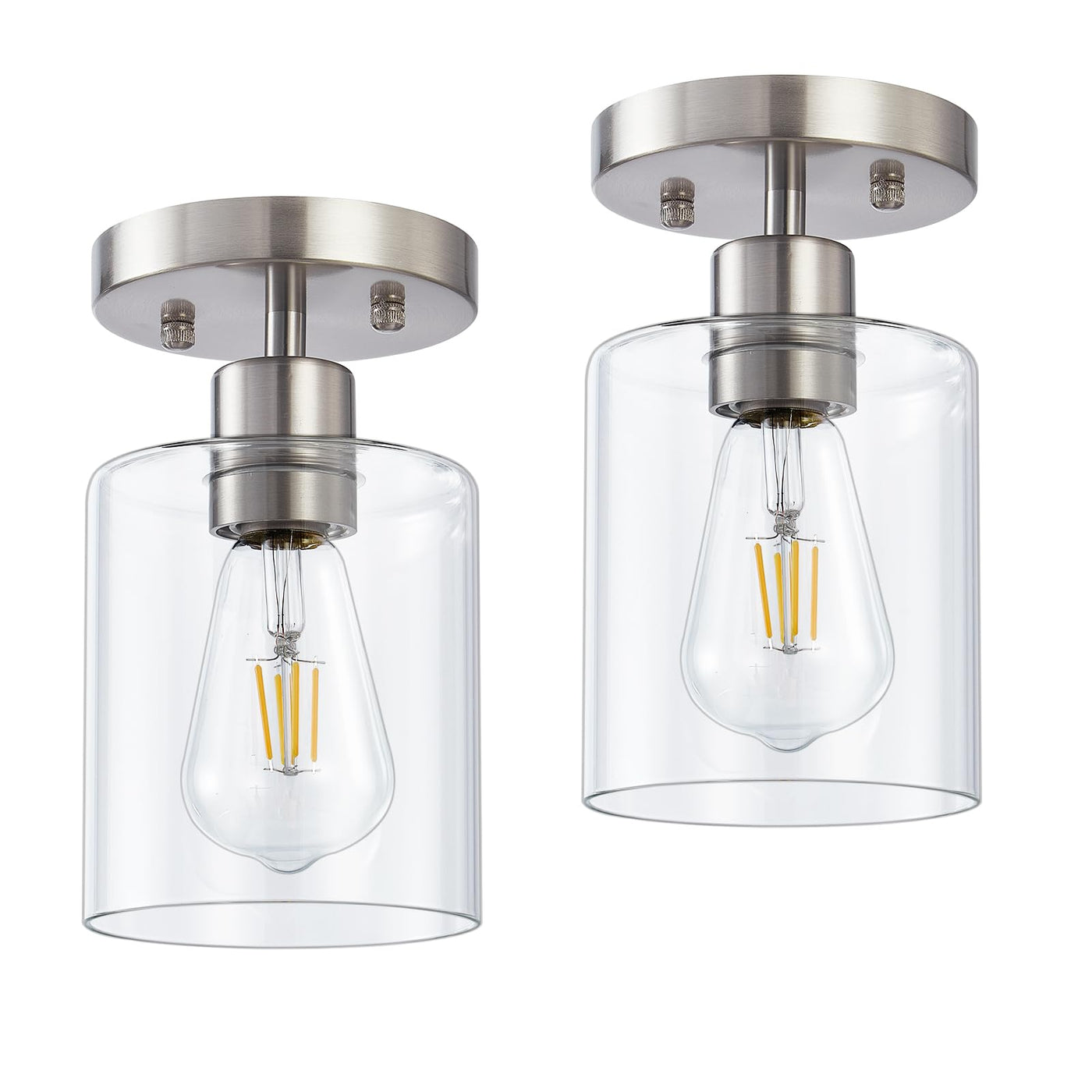 Yyt 1 Light Bathroom Light Fixtures Ceiling Mount, The Use Of Highly Textured Brushed Nickel Metal Surface And Clear Glass Shade Design, Has A Strong Anti-Rust Performance, Brightness Increased By 20%, Solve The Problem Of Insufficient Brightness In The Bathroom Ceiling Light Fixtures, The Perfect Show Of Modern Style(2 Lights Inside Package) Small Ceiling Light Fixture Dimensions Are 4.75In L And 4.75'' W And 9.1'' H, Suit For Kitchen, Dining Room, Bedroom, Foyer, Entryway, Living Room, Farmhouse, Over Sink, Etc, Also Suitable For Humid Areas. Yyt Provide The Kitchen Light Fixtures Ceiling Mount Necessary Accessories For Installation, Please Follow The User'S Manual For Installation And Use (Note: Ensure Personal Safety) The Brushed Nickel Hall Light Fixtures Ceiling Mount Is Crafted With Ul-Certified, 1Pc Ceramic Sockets And Wires, Made Of Metal Materials And Clear Glass Shade. The Surface Of Hall Lights Ceiling Mount Is Painted And Rust-Proofed To Give A More Textured Appearance, And Will Not Change Color After A Long Time Of Use Hall Light Fixture Is Compatible With Led Bulbs, Halogen Bulbs, Fluorescent Bulbs, Cfl Bulbs, And Incandescent Bulbs (Max.60W/Each, Bulb And Switch Not Included). If You Need To Dim The Ceiling Bathroom Light Fixtures, Please Choose Bulb And Switch With Dimming Function. To Save Your Electricity Bill, Led Bulbs Are Recomended. Hallway Light Fixtures Ceiling Edison Bulbs Will Have Better Light Effect Thank You For Choosed Yyt Kitchen Light Fixtures Ceiling Mount, You Can Install 1, 2, 3, 5 Or Even More Small Ceiling Light Fixture In The Kitchen, Hallway To Get A Brighter Light
