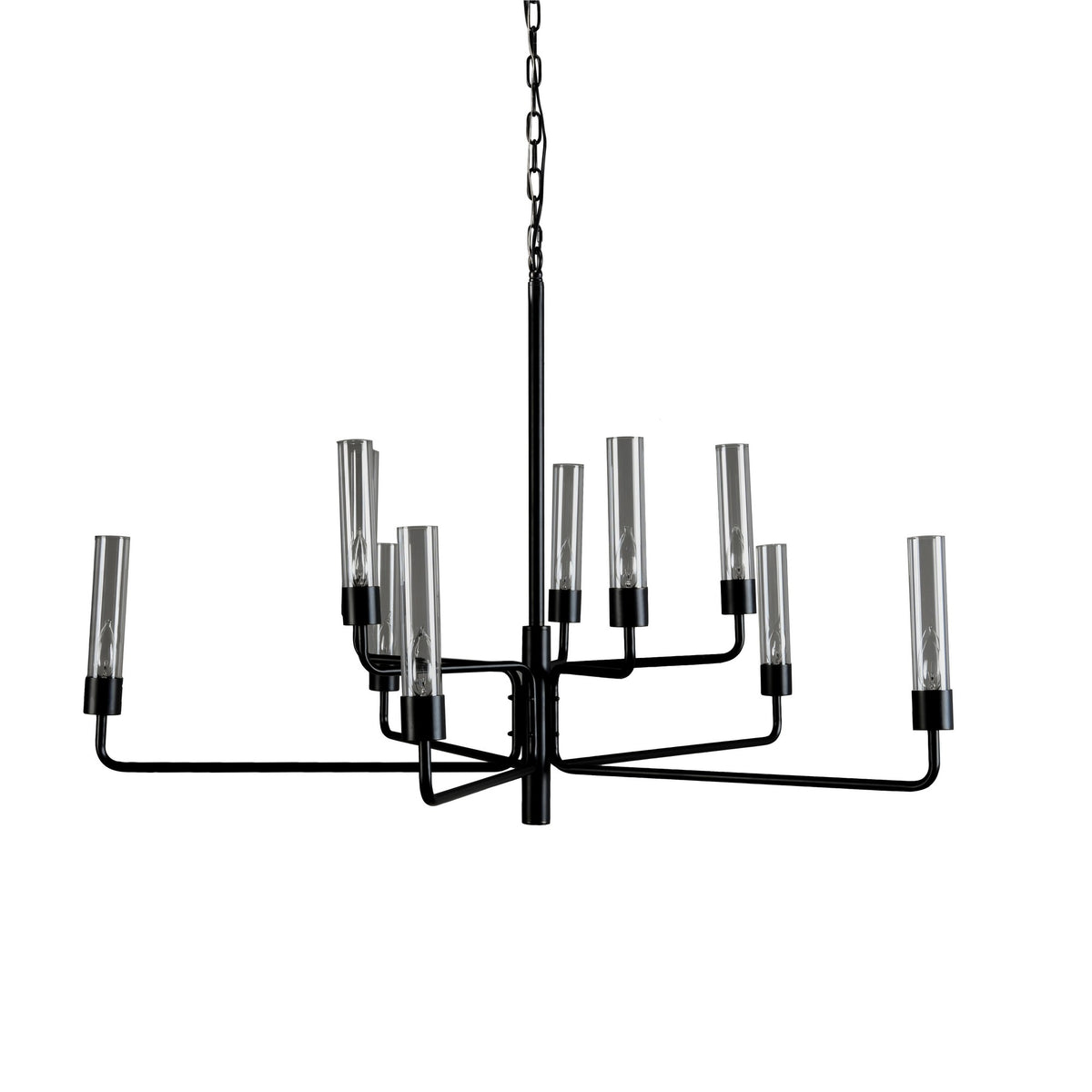 10 Light Metal Frame Chandelier with Glass Tubes, Black