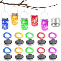 5 Colors-Solar Mason Jar Lid String Lights,10 Pack 30 Ultra Bright Leds String Fairy Star Firefly Jar Lids Lights,10 Hangers Included(Jars Not Included), Perfect For Decorative Garden Stake, Patio Or Lawn Pendant Light, Solar Garden Lighting,And Creating A Perfect Summer Ambiance On Your Patio. ? Specification Solar Panel :2V,70Ma Rechargeable Battery:Aaa,1.2 V,600 Ma String Light Quality:30 Led Bulbs Light Colors:Red/Blue/Green/Pink/Yellow Lighting Style:Steady Lid Size:Diameter 2.76(70Mm) Powered:Solar Charging,Aaa Battery ? Package Includes ?? 10 X 30 Led Solar Mason Jar Lights ?? Aaa Rechargeable Battery (Included In The Lid) ?? 10 X Stainless Steel Wire Hangers Note:Sorry,Jars Are Not Included. ?? Warm Notice 1.Please Noticed Each Light Includes An On/Off Switch Underneath The Lid, Turn It On Before Charging By Solar. 2.Screw On The Lid With Your Mason Jar,Hung It Anywhere You Like,Suggest Under The Direct Sunlight. 3.Please Keep The Surface Of Solar Panel Clean,Cause The Dust Will Affect The Charging Effect. 4.The Light Working Time And Brightness Depend On Weather,Season,Environment ,Ect. 5.If There Is Long Time Without Sunny,It Can Also Working By Aaa Battery Only.
