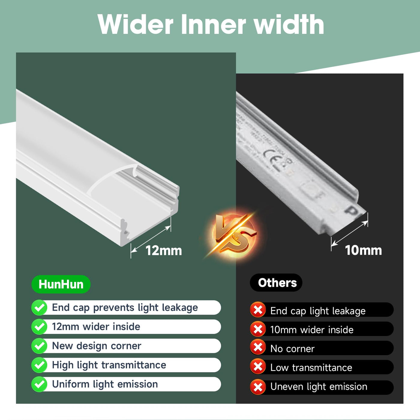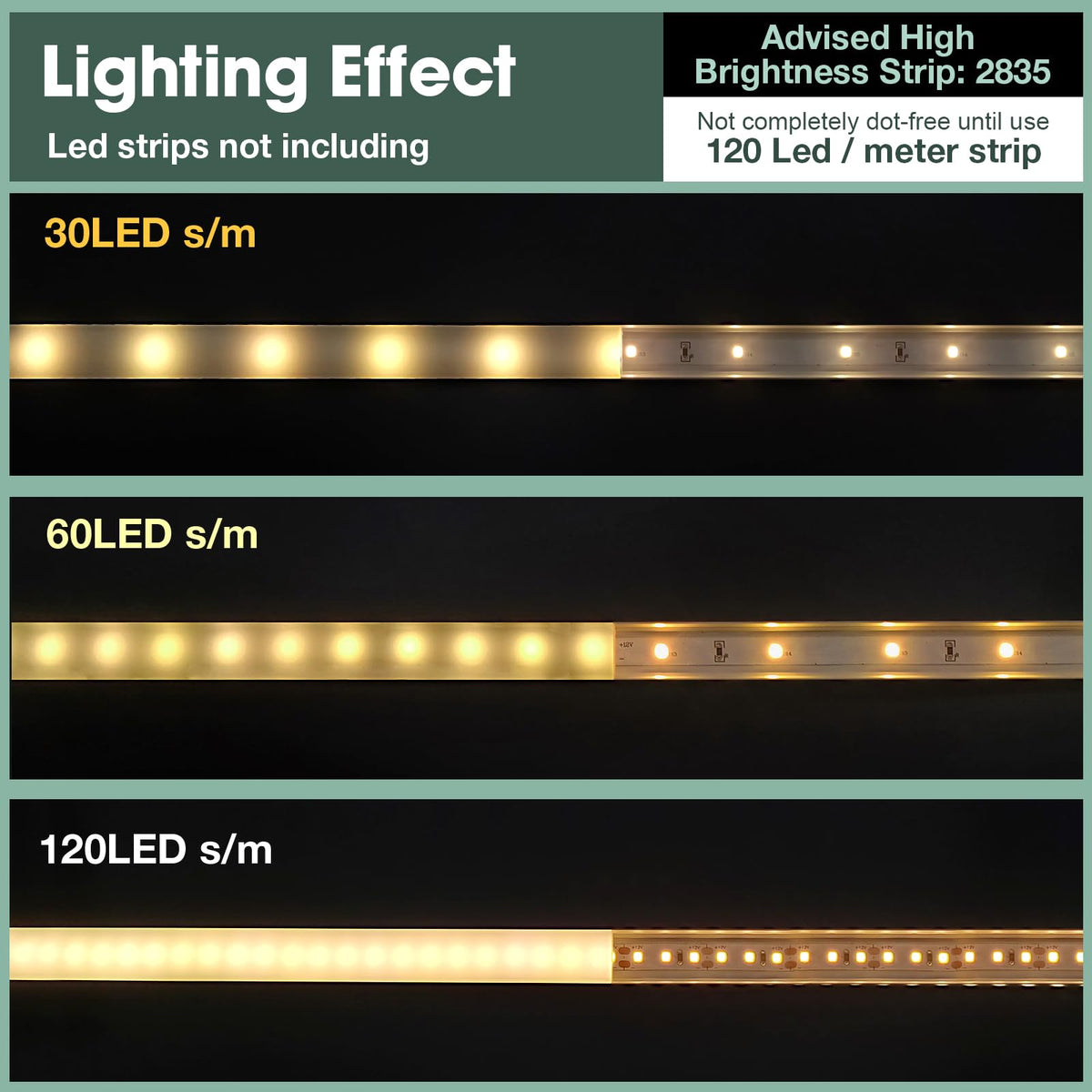 Q: What types of LED strips are compatible with this aluminum channel?A: This aluminum channel fits most popular LED strip types, including 3528, 5050, and 5630 LEDs, with a 12mm inner width that accommodates PCB widths up to 11mm.