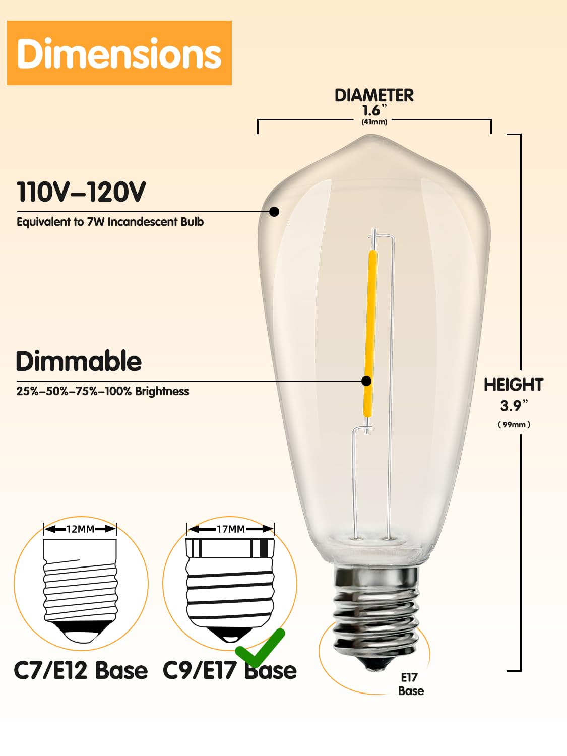 Vintage Edison Led Light Bulbs, 0.6 Watt C9/E17 Screw Base St40 Replacement Clear Plastic Bulbs. These St40 Led Bulbs Give You Exactly That Look. Clear Plastic Bulbs Cast A Soft Amber Glow, The Antique Finish And The Intricate Filament Design Makes Them Great For Many Different Kinds Of Fixtures, And They'Ll Complement Any Vintage Or Contemporary D Cor. Specifications: Voltage: 120 Volts Bulbs Count: 10 Pcs Material Of Bulbs: Plastic Light Color: Amber Warm Power Consumption: 0.6 Watt Each Base: E17 Intermediate Screw Base Bulbs Type: St40 Led Replacement Bulbs Bulb & Socket Type: St40/ C9/ E17 Base Height Of Bulbs: 2.32 Inches Diameter Of Bulbs: 1.57 Inches Energy Saving: 50000 Hours Lifespan (Average) Features: Shatterproof, Waterproof And Dimmer Compatible, Ul Listed For Indoor & Outdoor Use. Package Included: 1 X 10 St40 Clear Plastic Edison Bulbs String Light Replacement Bulbs Replacement Bulbs For Outdoor String Lights Patio Light Bulbs Replacement Patio Light Bulbs Intermediate Base Light Bulbs E17 Light Bulb E17 Led Bulb E17 Bulb Clear Light Bulbs C9 Replacement Bulbs Edison Bulb Outdoor Light Patio Dimmable Led Bulb Edison Light Bulb Outdoor Light Bulb String Light Bulb Plastic Led Edison Bulb Outdoor Led Light Bulb Dimmable Light Bulb E17 Led Bulb Led Patio Light Outdoor String Light Bulb C9 Edison Bulb St40 Led Replacement Bulbs 17 Base Led Light Bulb C9 Led Replacement Bulb Clear Light Bulb Plastic Led Bulbs St40 Led Bulb E17 Base Led Outdoor Bulbs E17 Plastic Bulb St40 Led Edison Bulbs St40 Edison Replacement Bulbs Shatterproof Edison Bulb E17 Led Bulb Outdoor Plastic Outdoor Light Bulb Edison String Light Replacement Bulbs Led String Light Replacement Bulbs E17 Led Bulb Dimmable