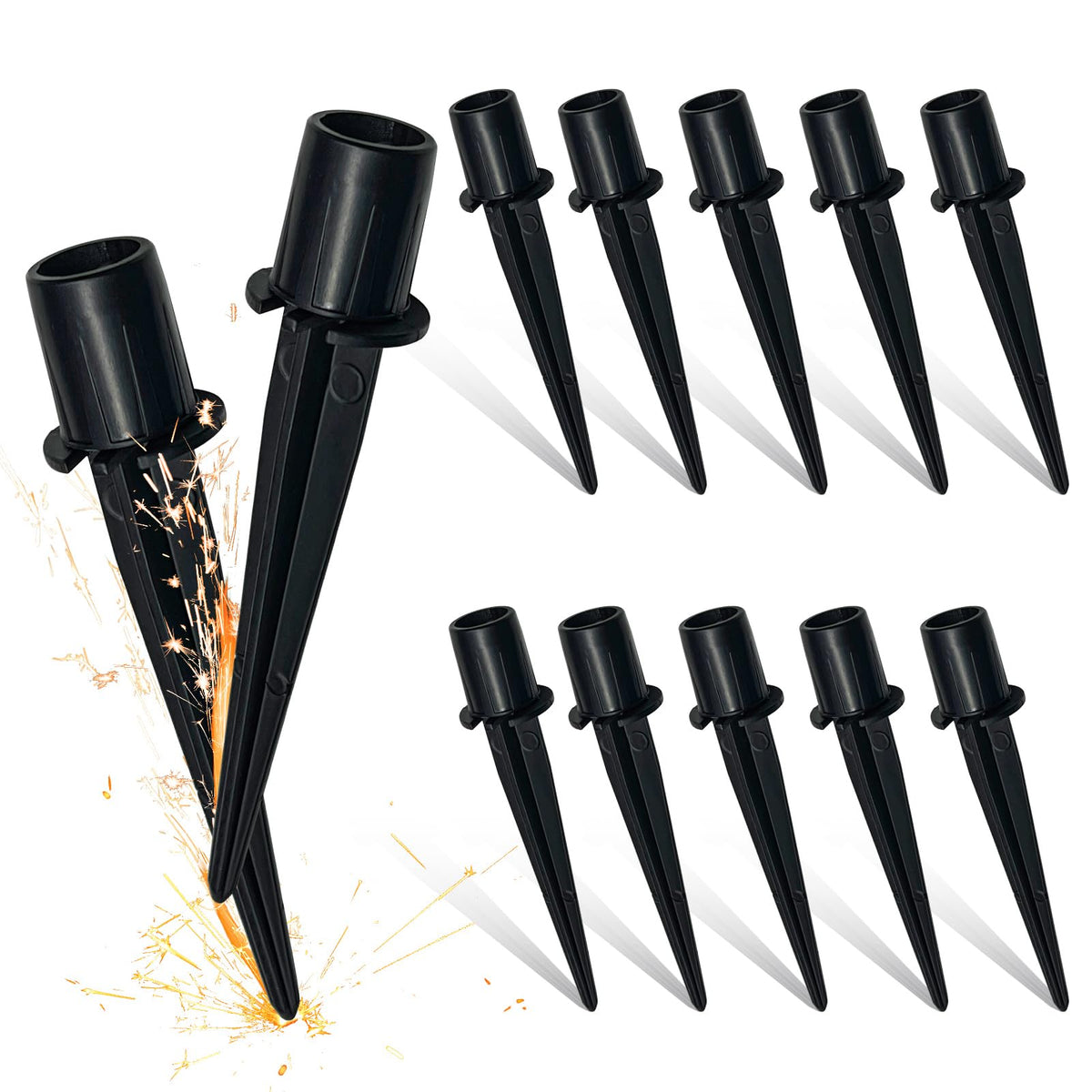 Q: What materials are the 10 Pack Metal Replacement Stakes made of?A: The 10 Pack Metal Replacement Stakes are crafted from superior aluminum alloy, which ensures durability and resistance to corrosion, making them a reliable alternative to plastic stakes.