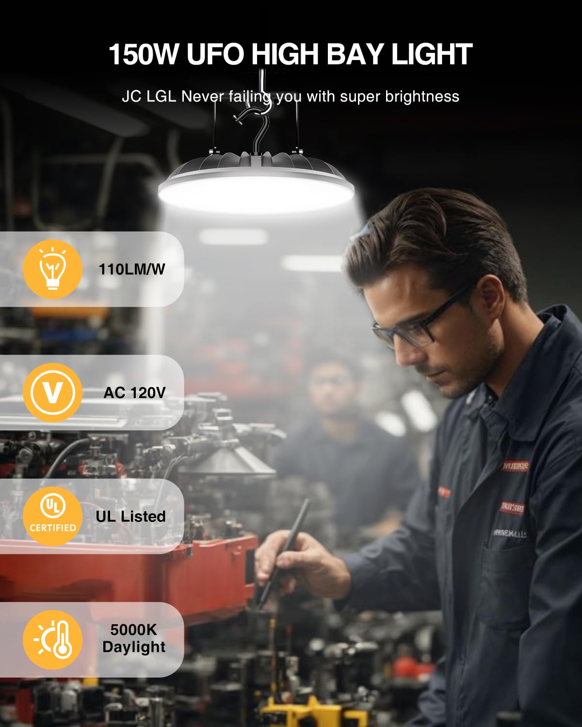 Q: What is the lumen output of the 10 Pack UFO LED High Bay Light?A: The 10 Pack UFO LED High Bay Light has an impressive total output of 16,500 lumens, providing bright and efficient lighting for large areas.