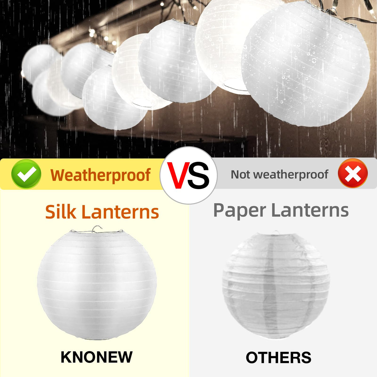 Q: Can these lanterns be used outdoors in bad weather?A: Yes, the KNONEW silk lanterns are designed to be waterproof and can withstand wind and rain, ensuring they remain beautiful decorations regardless of the weather conditions.