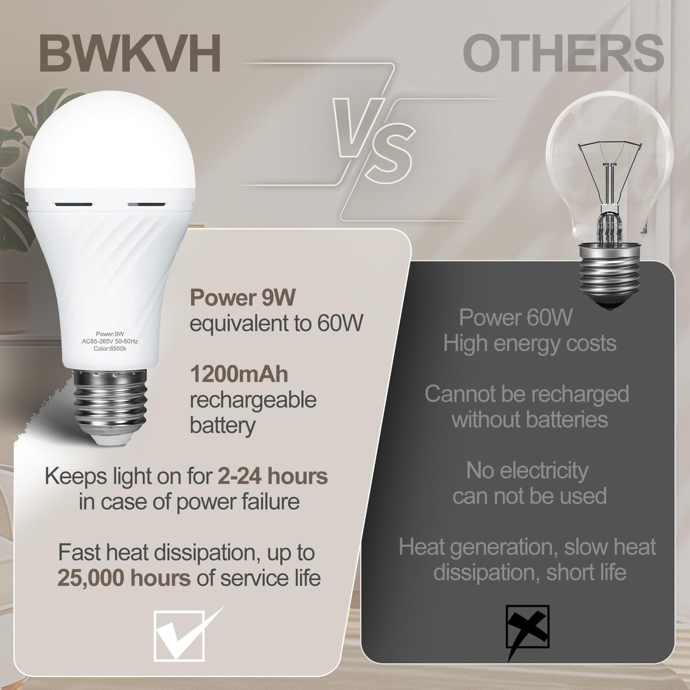 10 Packs Rechargeable Light Bulbs,Emergency Light Bulbs Socket Self-Charging, 6500K Battery Powered Light Bulb For Lamps And Wal