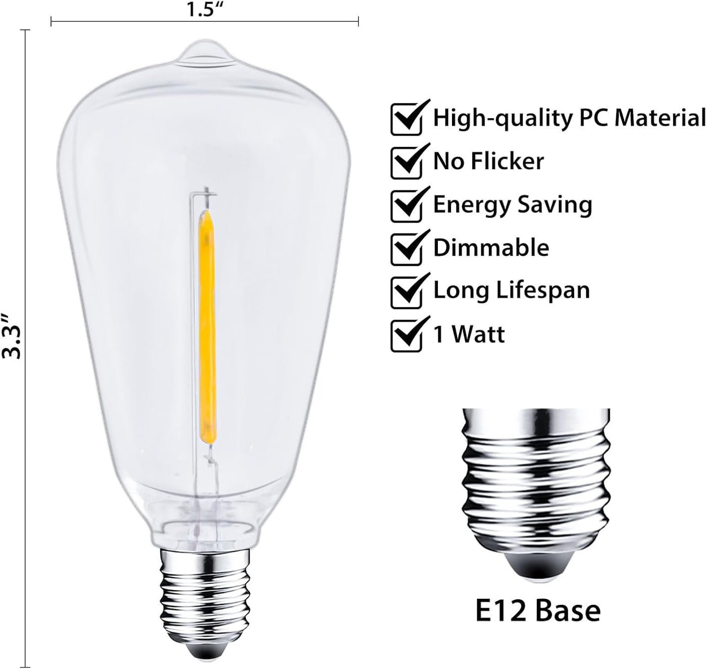 10 Packs St38 Led Edison Bulbs,0.6Watt E12 Base Small Vintage Light Bulbs Equivalent To 7W Incandescant, 2700K Warm White Bulbs