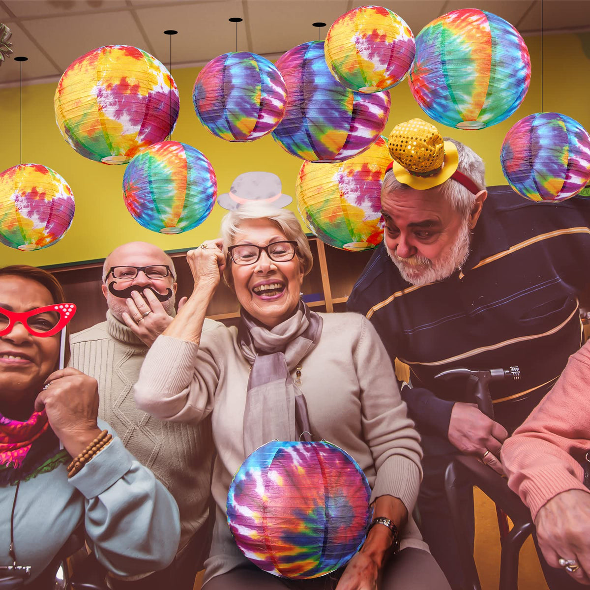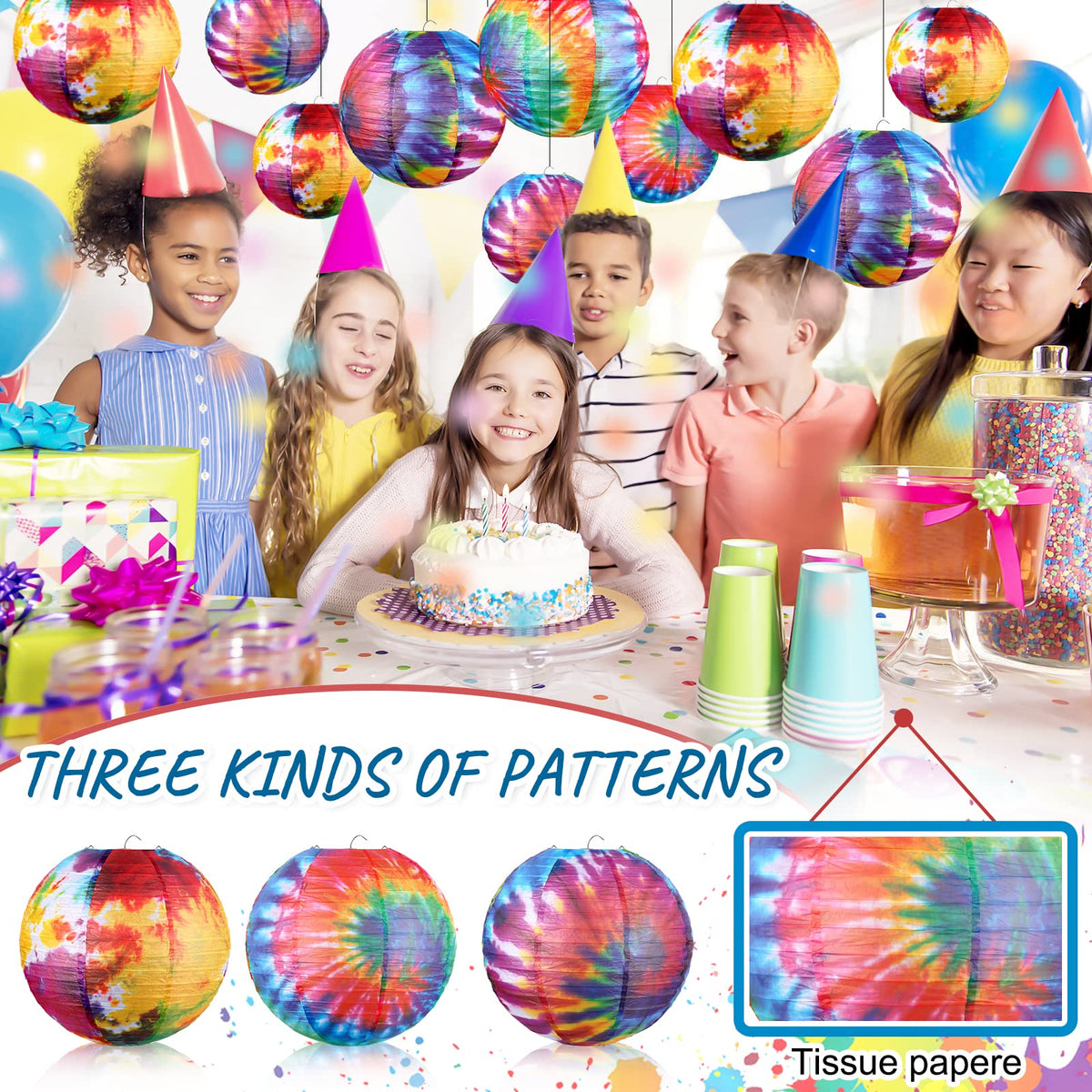 10 Pcs Tie Dyed Groovy Paper Lanterns Chinese/Japanese Lanterns Groovy Party Decorations Tie Dye Party Supplies Classroom Hangin