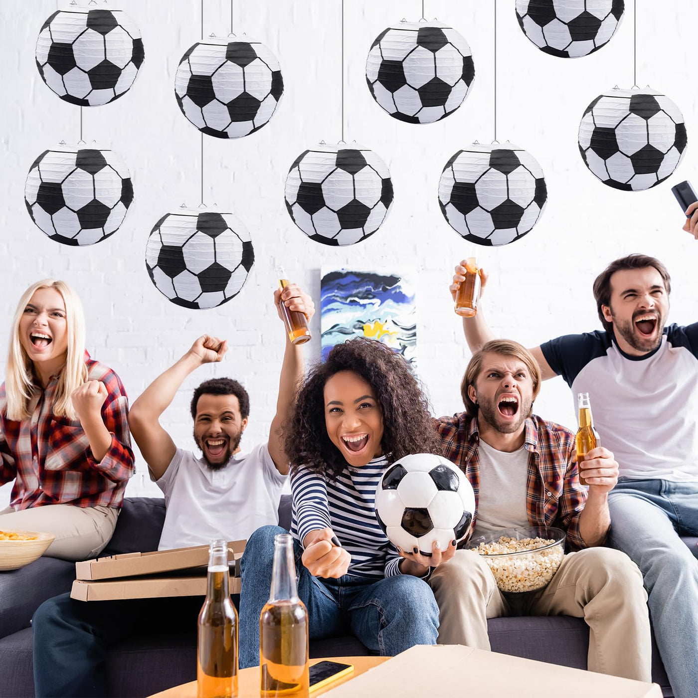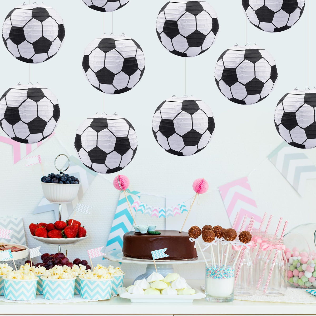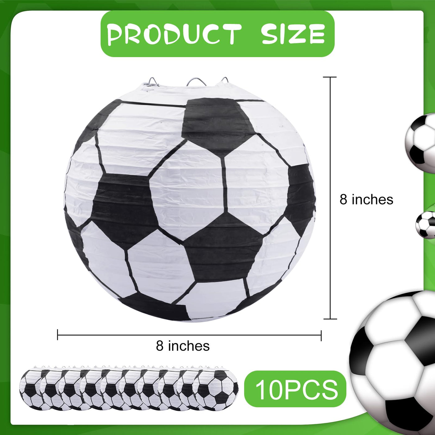10 Pieces Soccer Ball Paper Lantern Centerpiece, 8 Inch Soccer Paper Lanterns Kit Soccer Hanging Lantern For Birthday Decoration