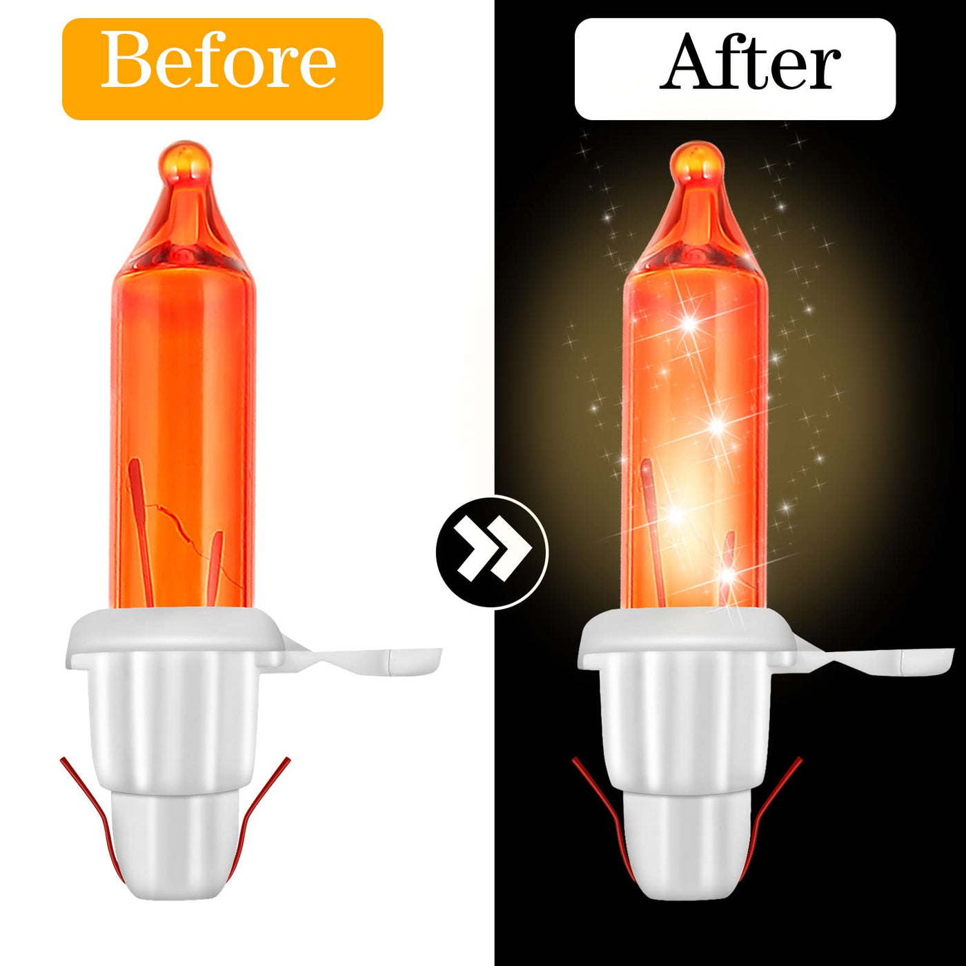 Q: What type of string lights are these replacement bulbs compatible with?A: These replacement bulbs are compatible with 50/100/150/200 count incandescent wire string lights. Ensure you check the specifications of your existing lights to confirm compatibility.