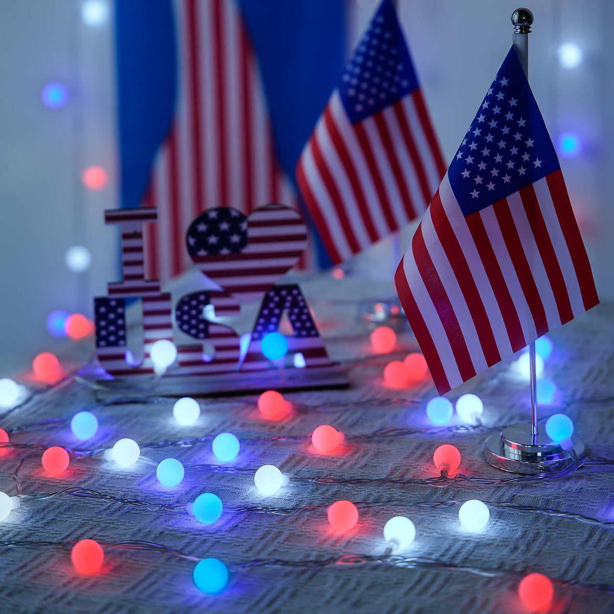 Q: Can I use these lights for patriotic events?A: Absolutely! The red, white, and blue lights make them ideal for patriotic events such as the 4th of July, Memorial Day, and Veterans Day. Their vibrant colors add a festive touch to any patriotic celebration.