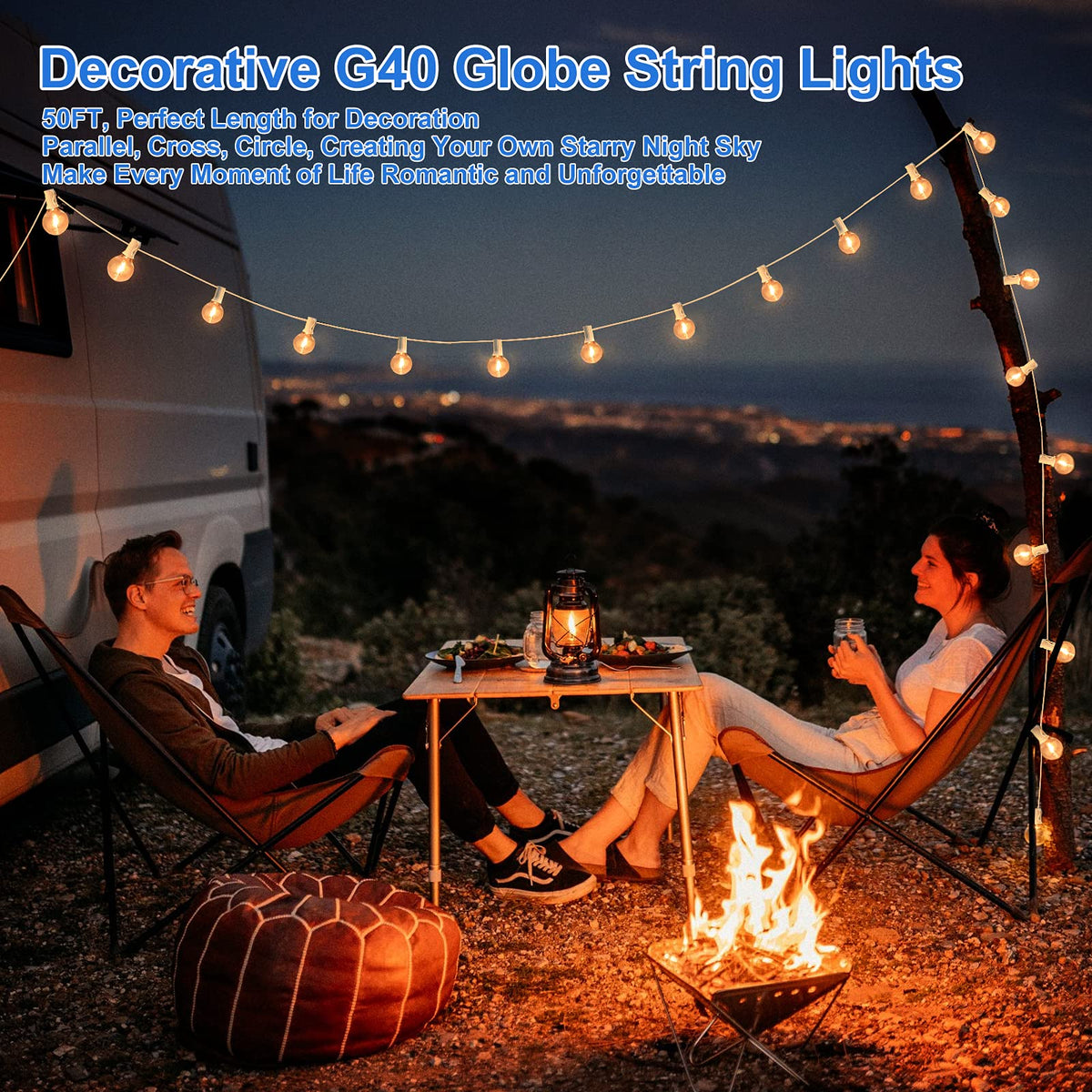 100Ft 2-Pack Outdoor G40 Led Globe String Lights Dimmable Shatterproof Waterproof Light Strings With 52 Bulbs Connectable Commer