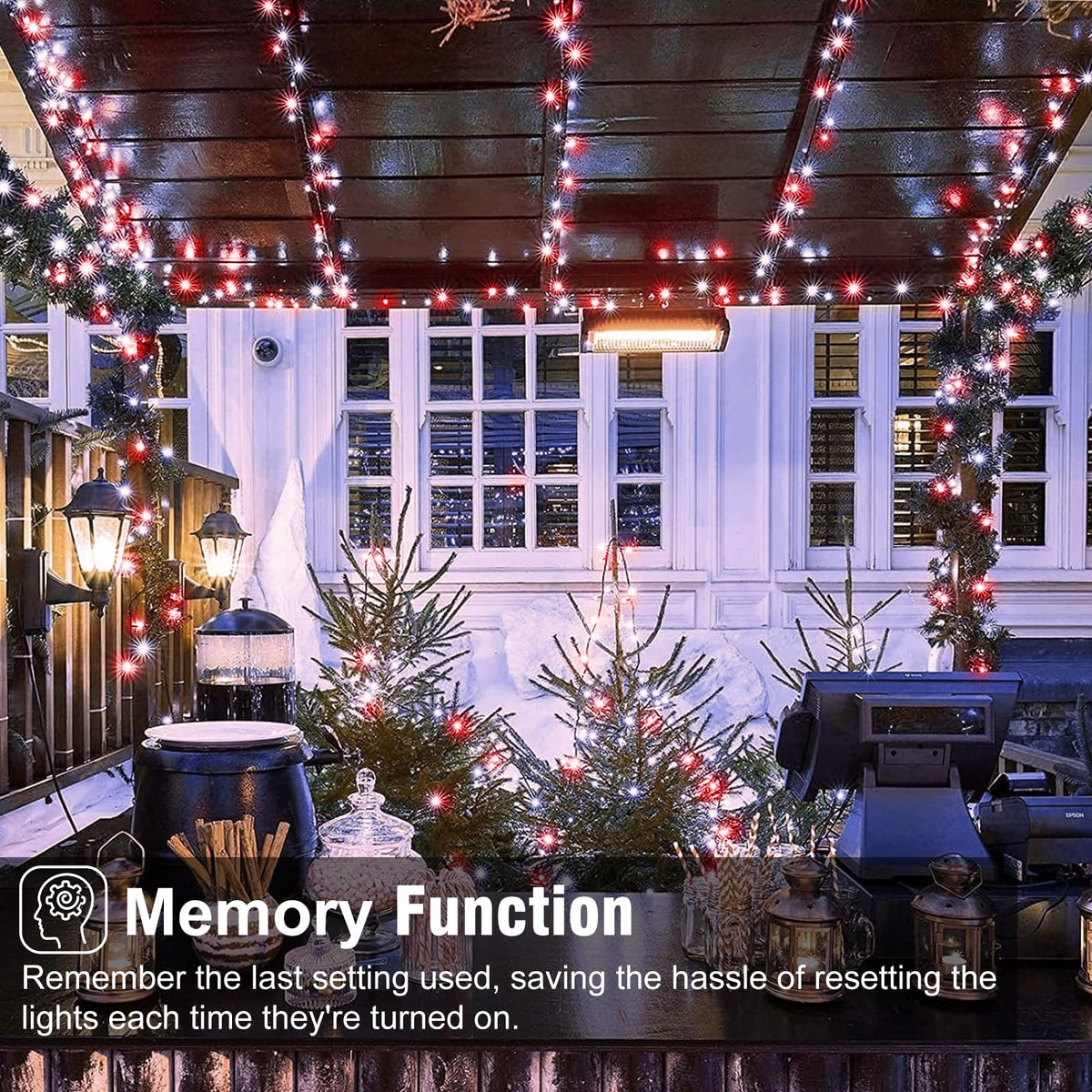 Q: How does the timer function work on the 100FT Christmas lights?A: The timer function allows you to set the lights to turn on for 6 hours and off for 18 hours each day. To activate it, simply long-press the button on the plug, and the built-in memory chip will remember your settings for convenience.