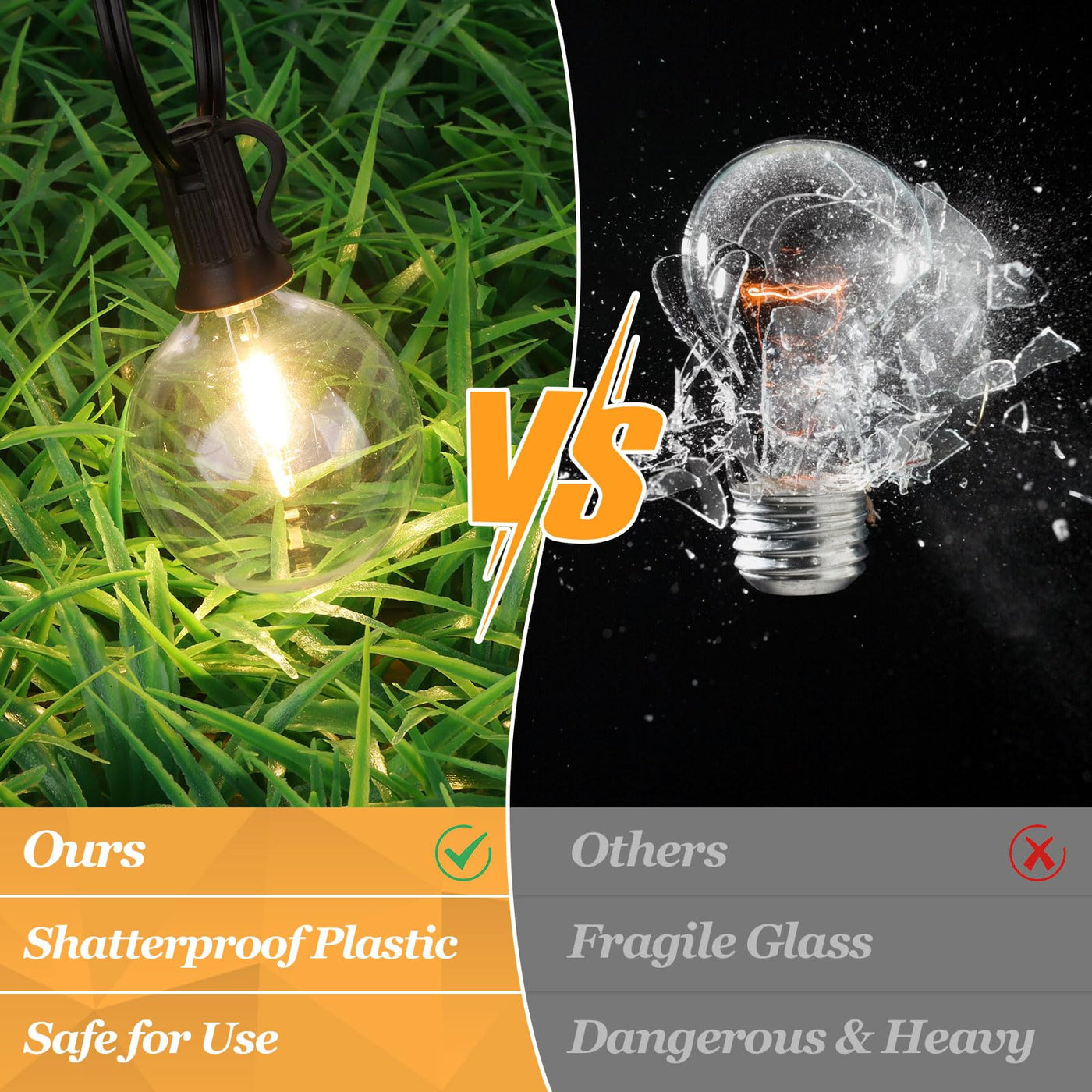 2. Shatterproof: Crafted from high-quality plastic, the patio string lights are shatterproof and no breaking if dropped, ensuring the safety and integrity during transportation and throughout the usage.