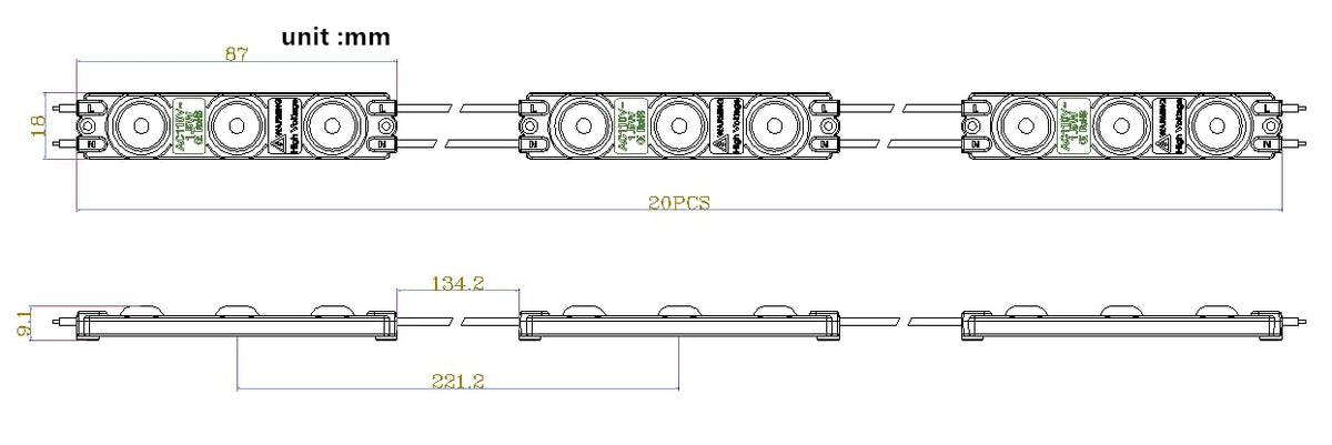Established In 2011, Shenzhen Qingchenzhiguang Technology Co Ltd Is A Specialized Manufacturer Engaged In The Applications, Development, Production And Sales Of Led Lighting Products Oem Is Available With Your Logo And Brand . Description: Model: Qc-Mh893 Operating Voltage: Ac110V Quantity Leds: 3Pcs 2835 Smd Leds Per Module Emitting Color : White 6500K Waterproof Ip Gradation: Ip44 Size Of Module :87*18*9.1Mm Length Of Wire(Between 2 Modules) : 13.5Cm Working Temp: -30 ? ~ +45? Storage Temp: -35 ?~ +60 ? Lifespan:> 50000 Hours Watt: 1.5W , Angle : 160Deg Applications : Store, Restaurant, Coffee, Bar, Bank, Airport, Railway, Public Advertise And Notice .Channel Letters Backlighting, Advertisement Signs, And Signage Letters . Package Included: 100Pcs/Package