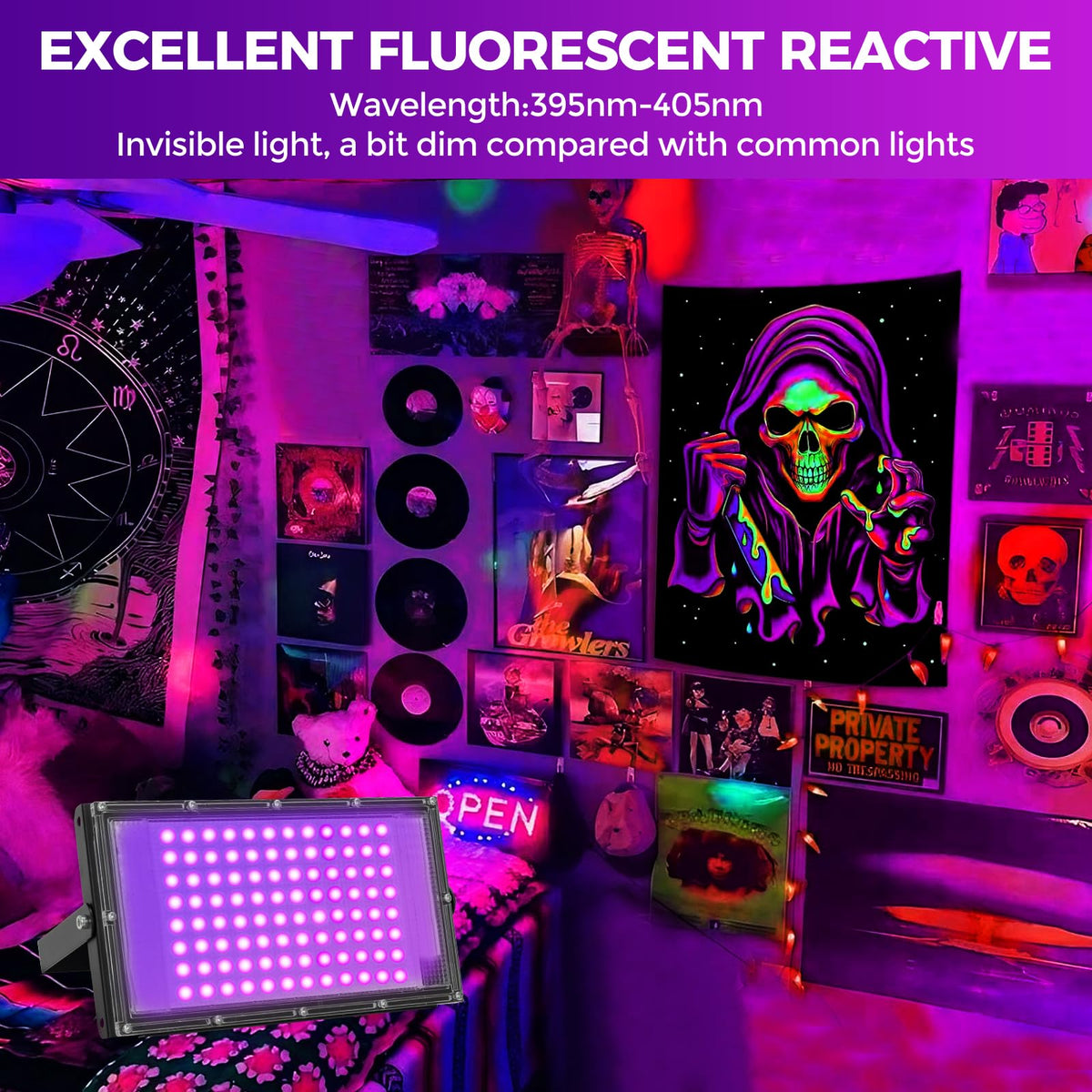 100W Led Black Lights For Glow Party - Waygor Uv Blacklight Floodlight 395Nm Blacklights Spotlight Purple Black Light Flood Ligh