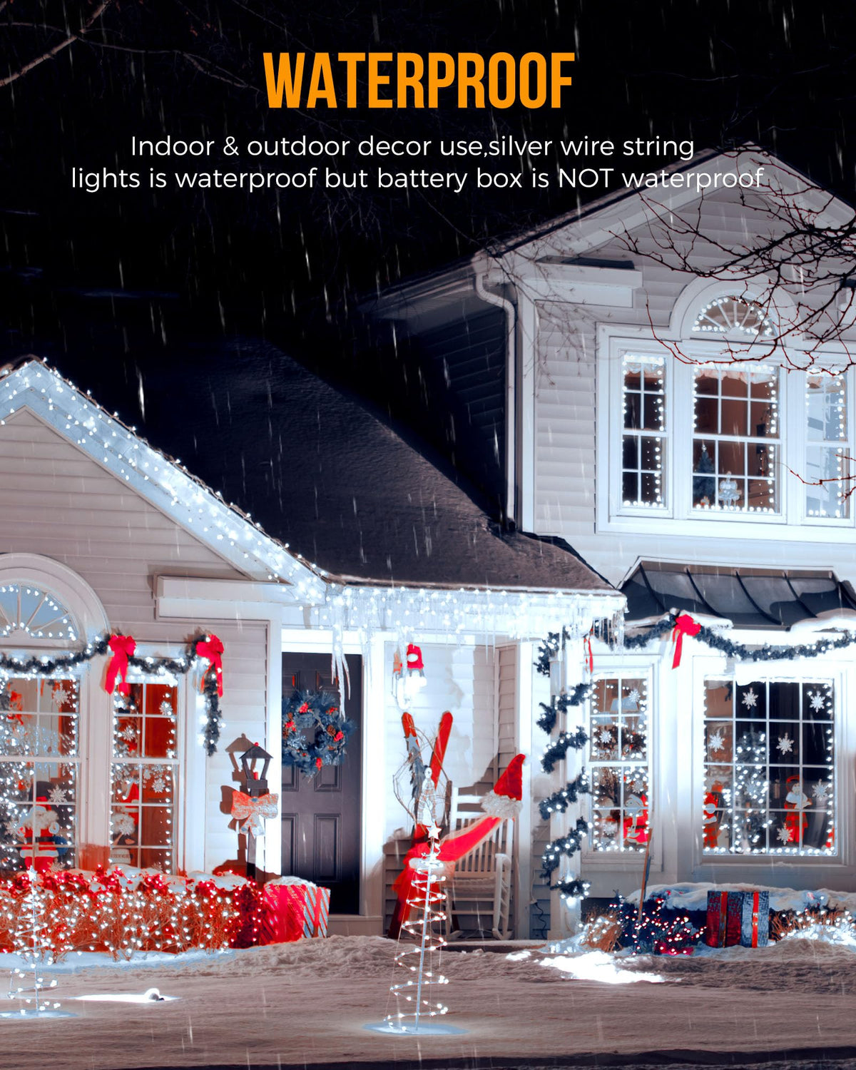 Q: Can these fairy lights be used outdoors, and are they waterproof?A: Yes, these fairy lights are designed for outdoor use and are IP44 waterproof, making them resistant to moisture and suitable for various weather conditions. However, please note that the battery pack is not waterproof.