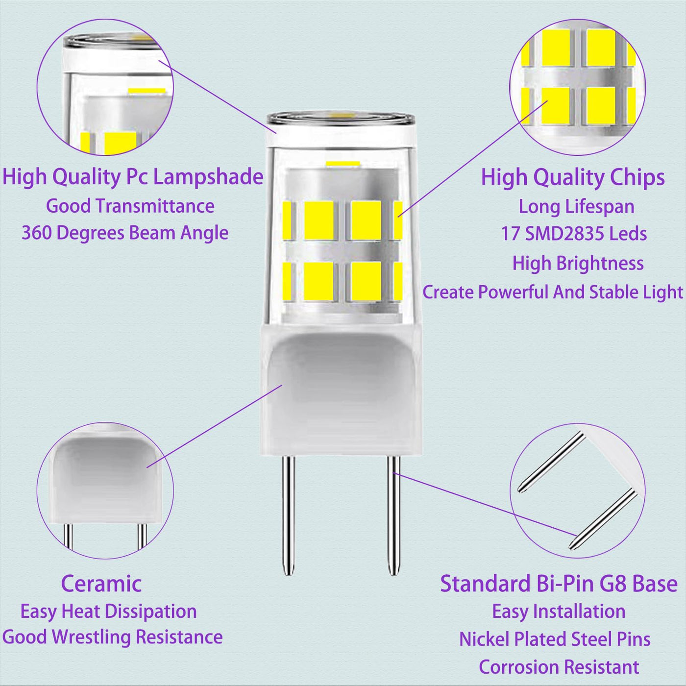(10Pack)G8 Led Bulbs,T4 3W Replacement For 20-25W Halogen Bulb,Daylight White 6000K,Gy8.6 Jcd Type Bi-Pin Base,120V,Puck Light B
