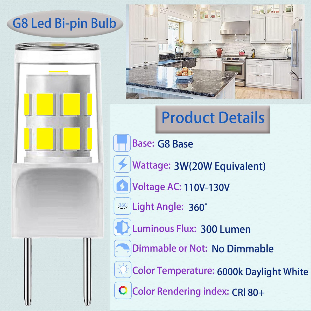 Brand:Gflsd Light Type:Led Bulb Shape Size:T4 Lamp Base: Gy8.6 Wattage:3 Watts Incandescent Equivalent Wattage:20-25 Watts Special Feature:Energy Efficient, Stable And No Flickerbr,Instant On Without Delay,Low Heat,Long Lasting Lifespan Voltage:100-130 Volts Number Of Items:5 Light Color:Daylight White Color Temperature: 6000 Kelvin Dimmable:Non Dimmable Brightness:300 Lumen Average Life: 25000 Hour Shape:Bulb Connectivity Technology:Normal Bulb Material:Ceramic Body, Pc Mask Indoor/Outdoor Usage:Indoor Model Info: 17Pcs Super Bright 2835 Smd Leds Power Consumption:3 Watts Beam Angle: 360 Degree Manufacturer:Gflsd Light Source Wattage:3 Watts Batteries Included:No Batteries Required:No Color Rendering Index:?80Ra Specific Uses For Product:Often Used For Under Cabinet Lighting, Puck Lights, Ge Microwave Light,Under Counter Lights For Kitchen, Range Hood, Accent Lights, Landscape Lights, Table/Desk Lamps, Floor Lamps, Wall Sconces, Display Lighting,Etc.