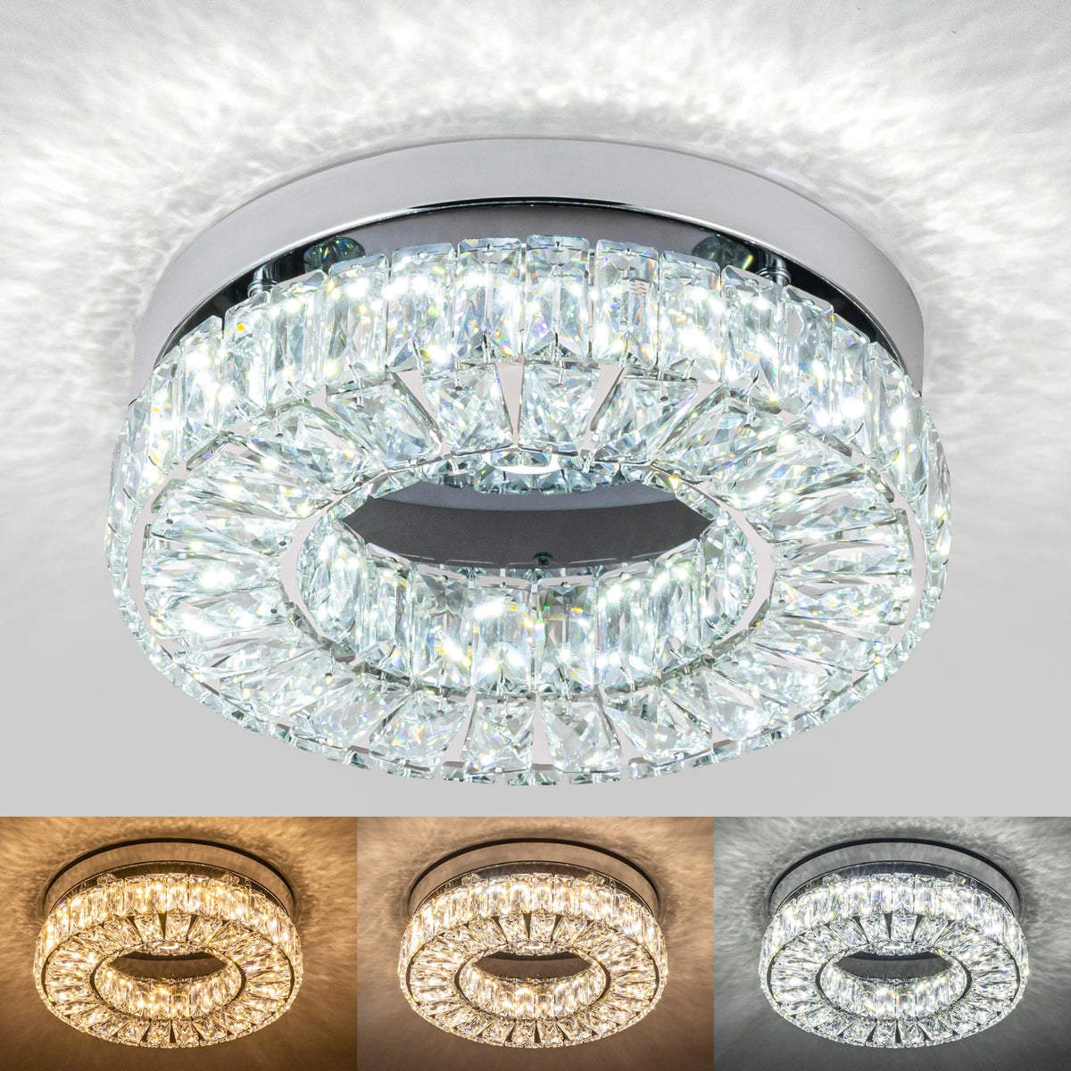 11.8 Crystal Ceiling Light Fixture Bedroom Chandelier Ceiling Light Led Flush Mount Chandelier For Dining Room Hallway (3 Col