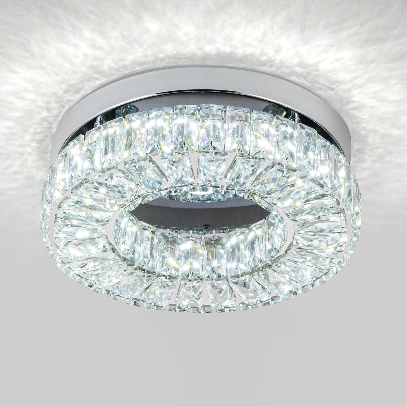 11.8 Crystal Ceiling Light Fixture Bedroom Chandelier Ceiling Light Led Flush Mount Chandelier For Dining Room Hallway (6500K