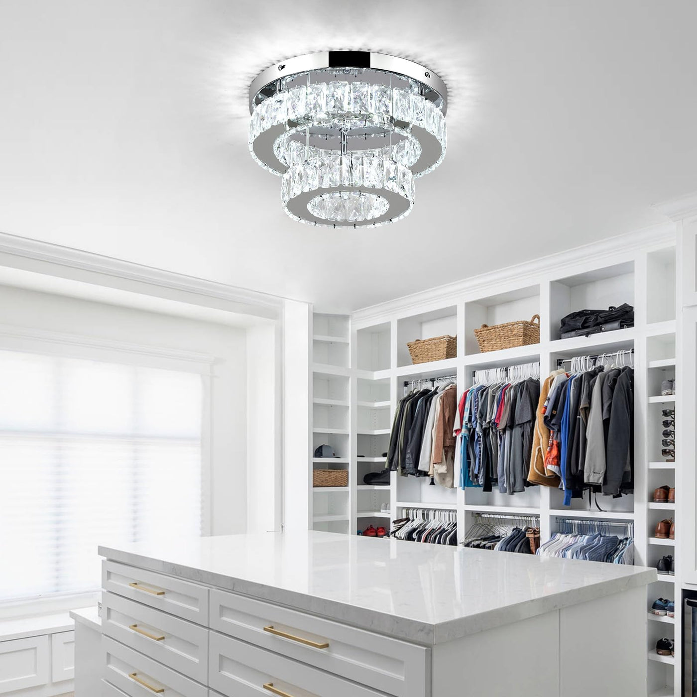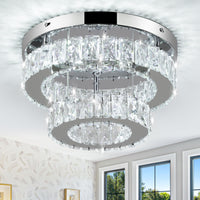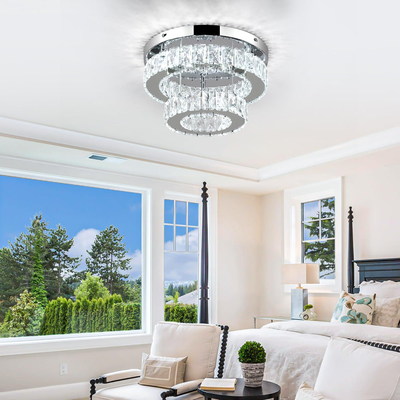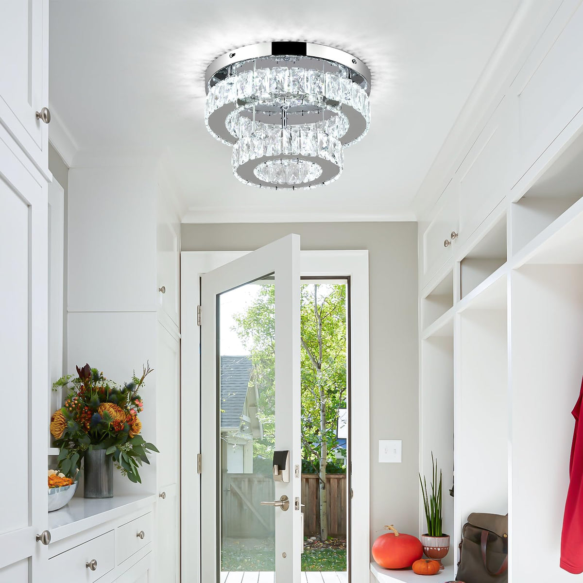 11.8 Inch Modern Mini Crystal Chandelier Led Flush Mount Ceiling Light - 2 Layer K9 Crystal, Small Chandelier For Bedroom, Hallw