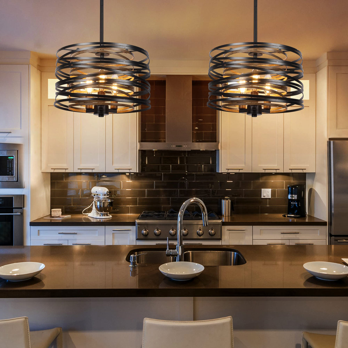 12.6'' Farmhouse Chandeliers For Dining Room, 3-Light Industrial Metal Hanging Light Fixture, Rustic Drum Pendant Light For Entr
