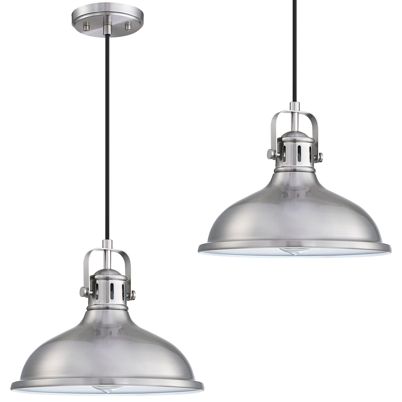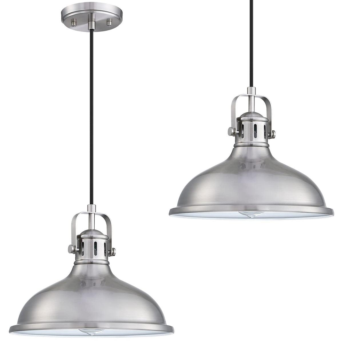 12 Inch Led 2 Pack 1 Light Pendant Light Industrial Vintage Fixtures Metal Chandelier Lights With Brushed Nickel Finish,Ceiling