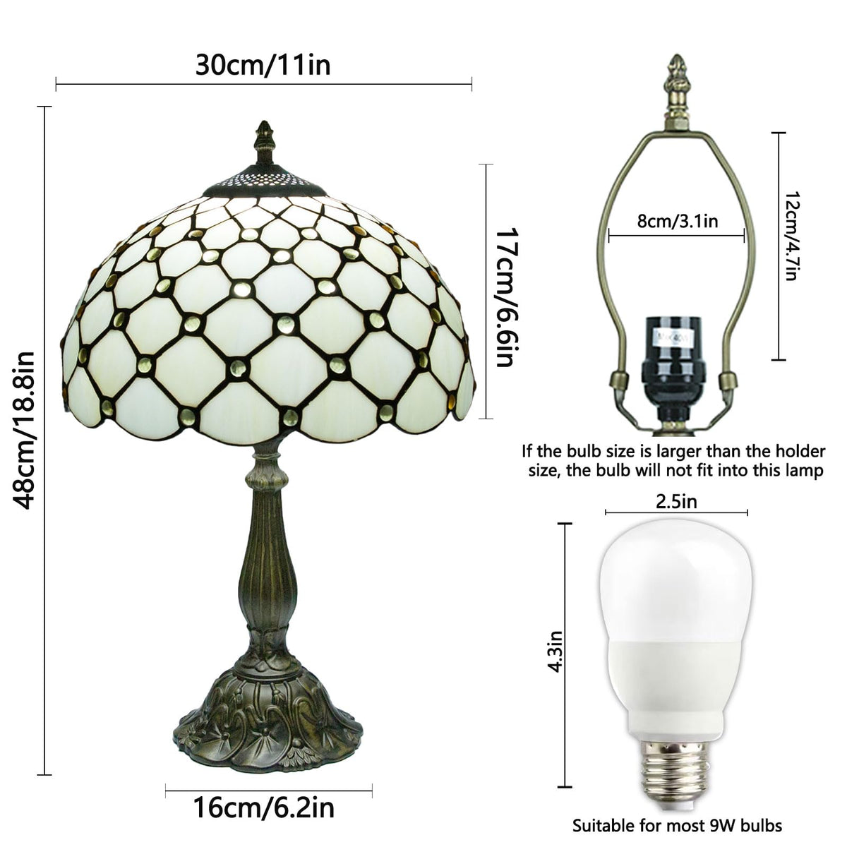 ? Tiffany Lamp - One Of The Most Gorgeous Lamps! ? The Tiffany Style Lamp Is The Effect Of Welding Parts Of Colored Glass Colored Glass. This Kind Of Glass Is Not The Monochromatic Ordinary Glass We See In Glass Shops. Three Colored Glasses Are Made Of Various Glass Materials Of Different Colors Pressed Into Various Colors To Form The Natural Pattern Of Artistic Glass. This Is Also The Raw Material Tiffany Needs Most. Lampshade Wide: 12 Inches (30Cm) Height: 18 Inches (48Cm) Lampshade Material: Stained Glass Base Material: Resin Max Compatible Wattage: 60 W Button: Push Button Switch + Remote Control Bulb: Led Bulb E26 ? Normal Question If You First Time Buy Tiffany Lamp ? Why The Line Look Rough: We Welding The Small Glass With Tin And Copper Foil By Hand So Line On The Surface Not Smooth Some Also Have Rough Gap ? Why Look Dark : Tiffany Lamp Main For Decoration And Reading The Stained Glass Show Beautiful Color But Obstruct The Light Bright Big Area ? Why Color Inhomogeneity: The Stained Glass Look Like Cloud Or Oil discomfort-reducingting The Color Is Similar But Not Same Some Area Maybe Big Different ? Why Look Like Plastic: The Small Piece Glass Been Jointed Together So The Percussion Is Depressing But Glass Weight Is 2 Times Than Plastic And CouldnT Been Burn By Fire Please Test It ? Warm Reminder: ? The Size Of The Table Lamp Is Measured Manually And An Error Of 2Cm Is Possible. ? Due To Factors Such As Lighting Display And Natural Environment There May Be Certain Color Differences Between Product Images And Physical Objects. ? If You Have Any After-Sales Problems After Receiving The Product You Can Contact Us Through large online retailer First And We Will Solve It For You.