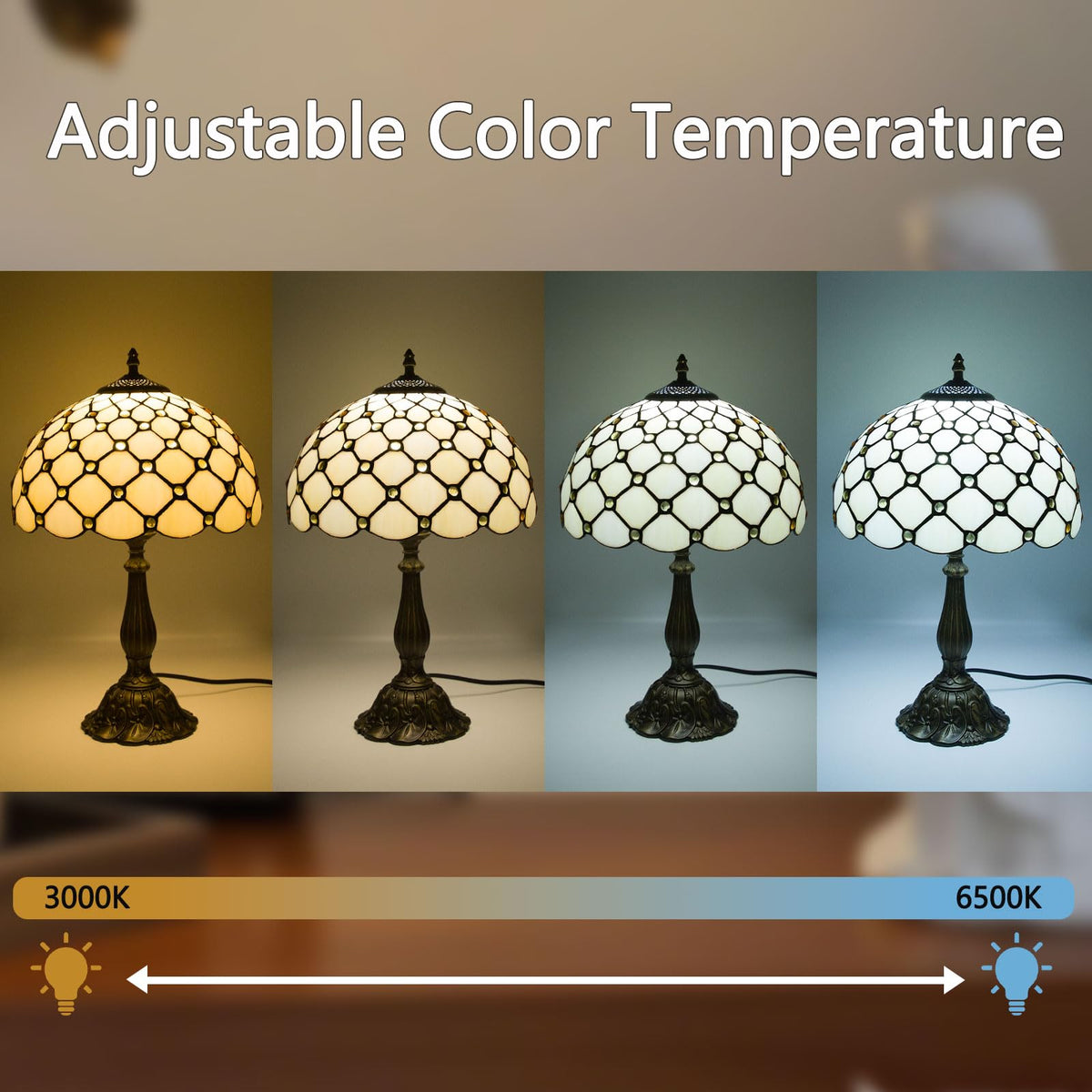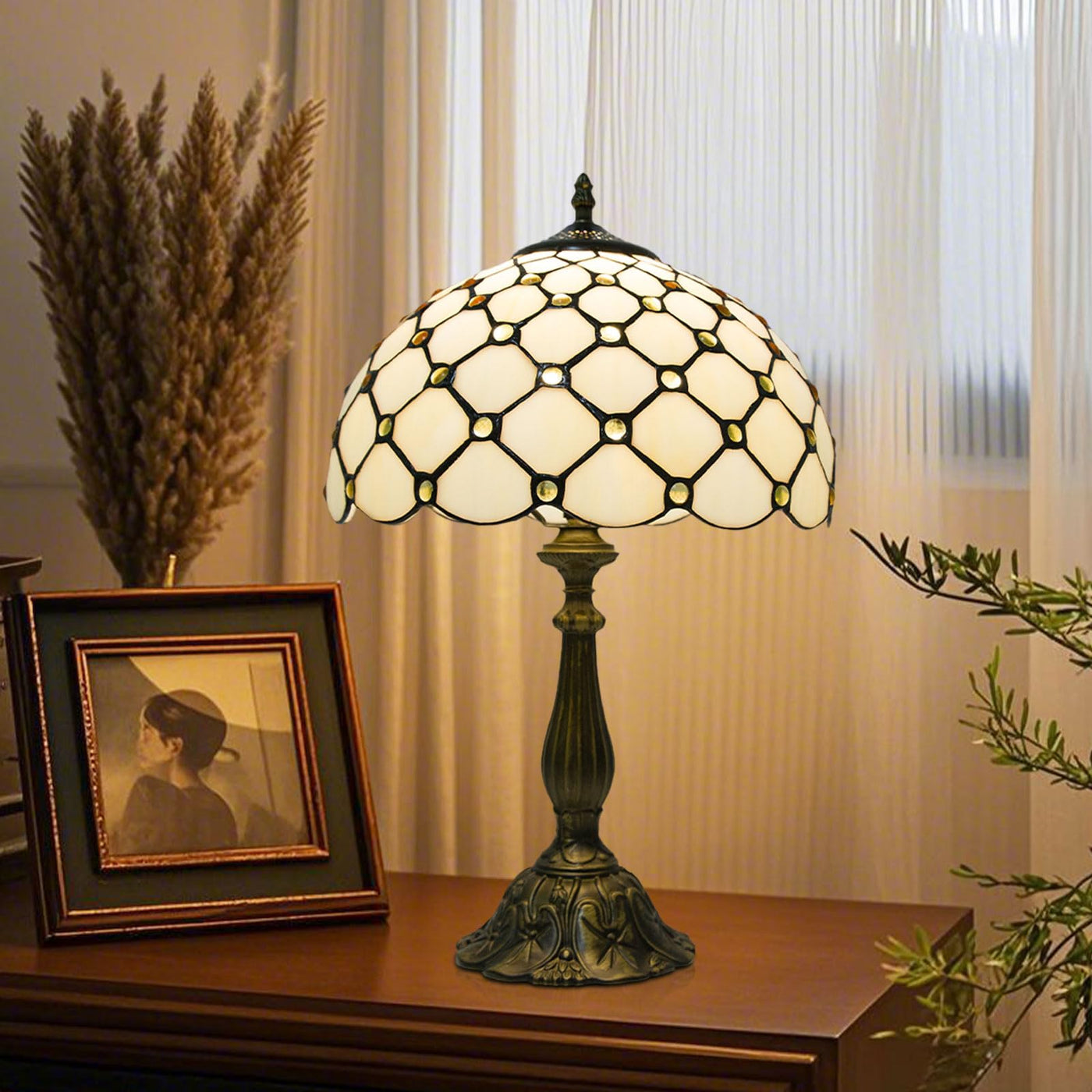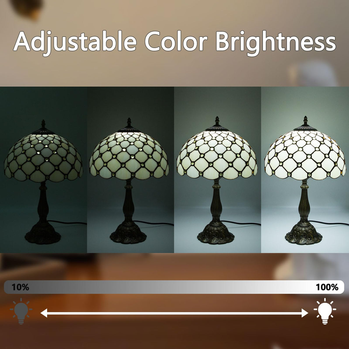 12 Inch Tiffany Table Lamps With Remote Control Stained Glass Lamp With Stepless Dimmable Colors Temperature & Brightness For Living Room Bedroom Office 9W Bulb Included (White Bead Curtain)
