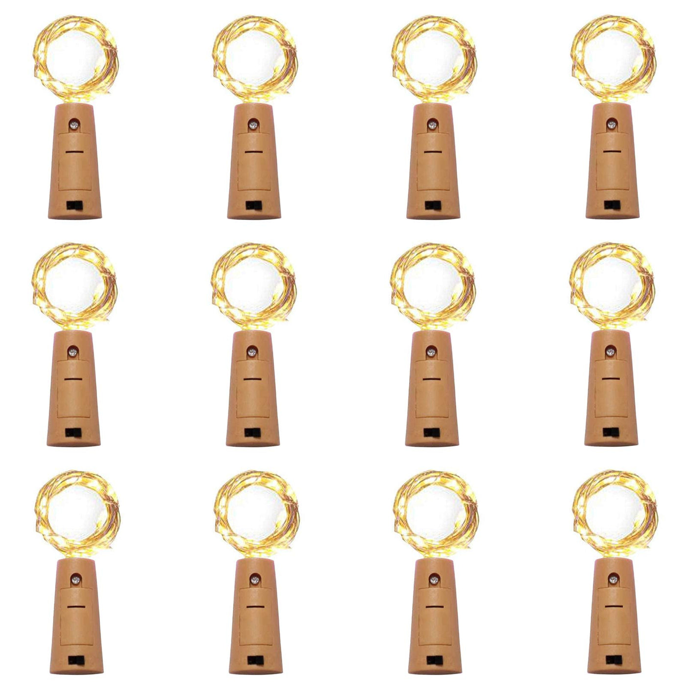 12 Pack 20 Led Wine Bottle Cork Lights, Fairy Mini String Lights Copper Wire, Battery Operated Starry Lights For Diy, Christmas, Halloween, Wedding, Party, Indoor&Outdoor (12 Pack, Warm White)