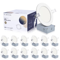 12 Pack 4 Inch Ultra-Thin Led Recessed Ceiling Light With Junction Box, Recessed Lighting 4 Inch 6000K Dimmable Clear White, 9W