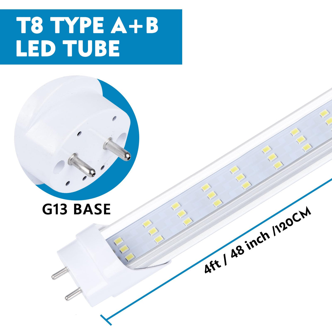 12 Pack, 4Ft Led T8 Type A+B Tube Lights, 28W(80W Equivalent), 4000Lm, 6000K, Clear Cover, Single Or Double End Powered, Plug An