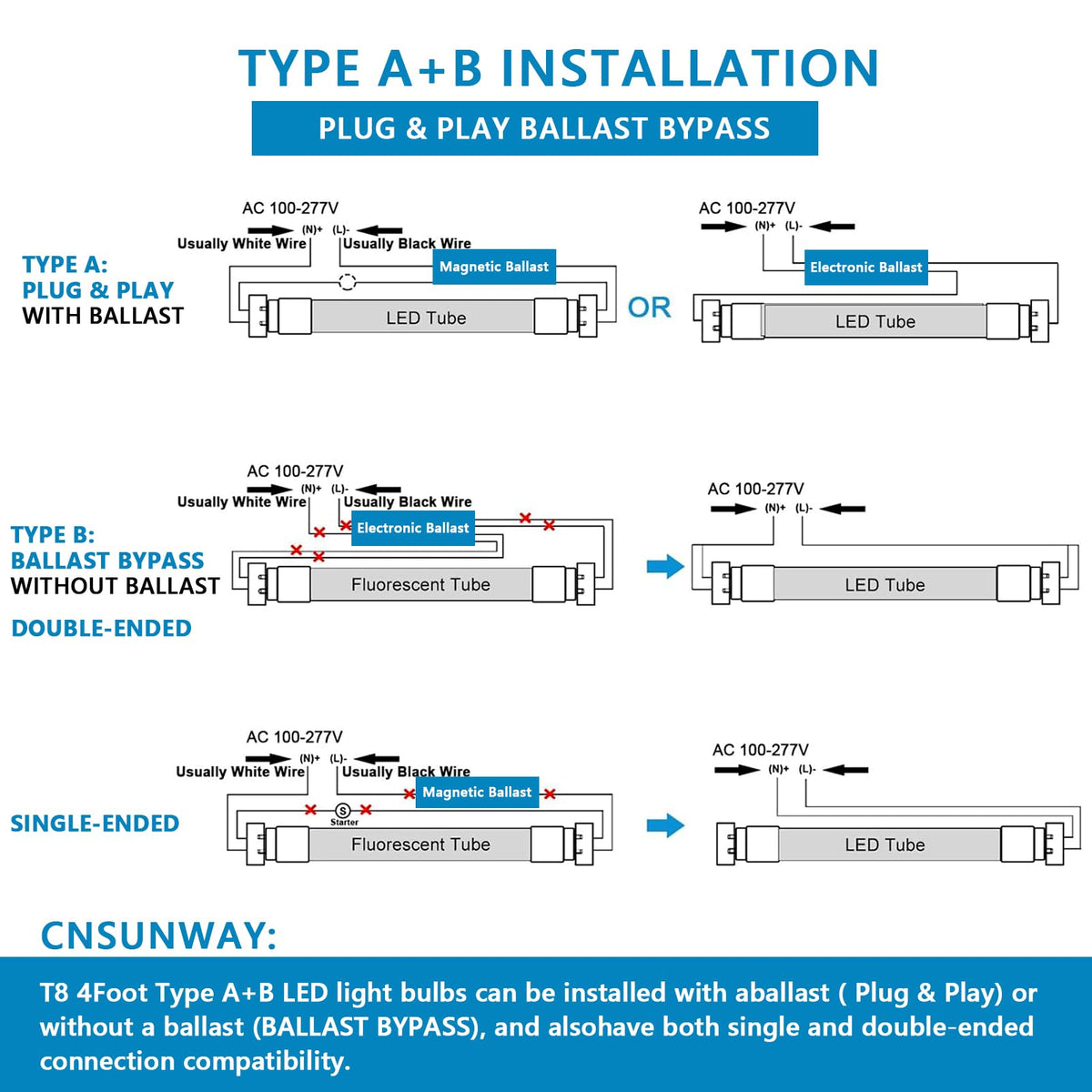 12 Pack, 4Ft Led T8 Type A+B Tube Lights, 28W(80W Equivalent), 4000Lm, 6000K, Frosted Cover, Single Or Double End Powered, Plug