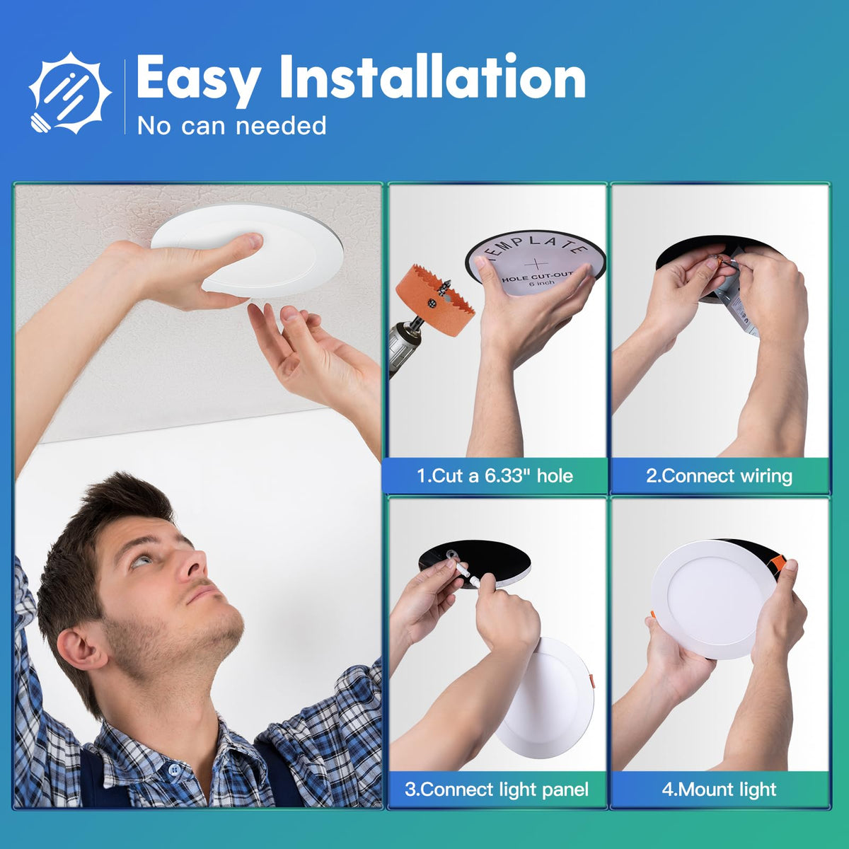 Q: Are these LED recessed lights easy to install?A: Absolutely! The ultra-thin design of these recessed lights allows for easy installation in as little as 2 inches of ceiling space, making them suitable for both retrofit and new construction projects.