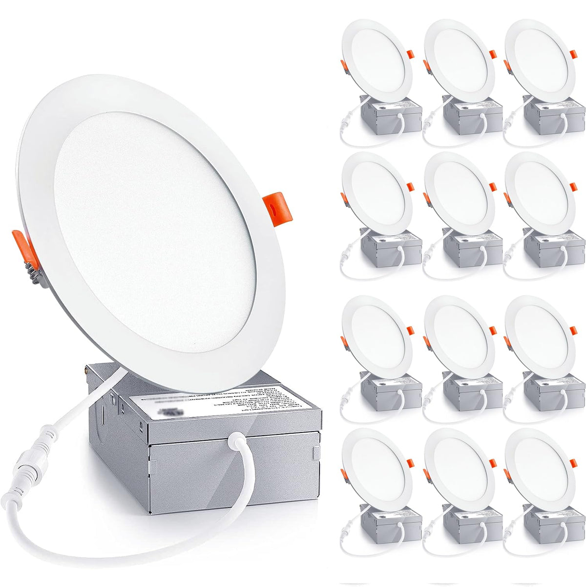 12 Pack 6 Inch Ultra-Thin Led Recessed Ceiling Light With Junction Box, Led Recessed Lighting 6 Inch 12W 110W Eqv, Led Downlights,1050Lm High Brightness Can Lights(6500K-Daylight, 6 Inch-12Pack)