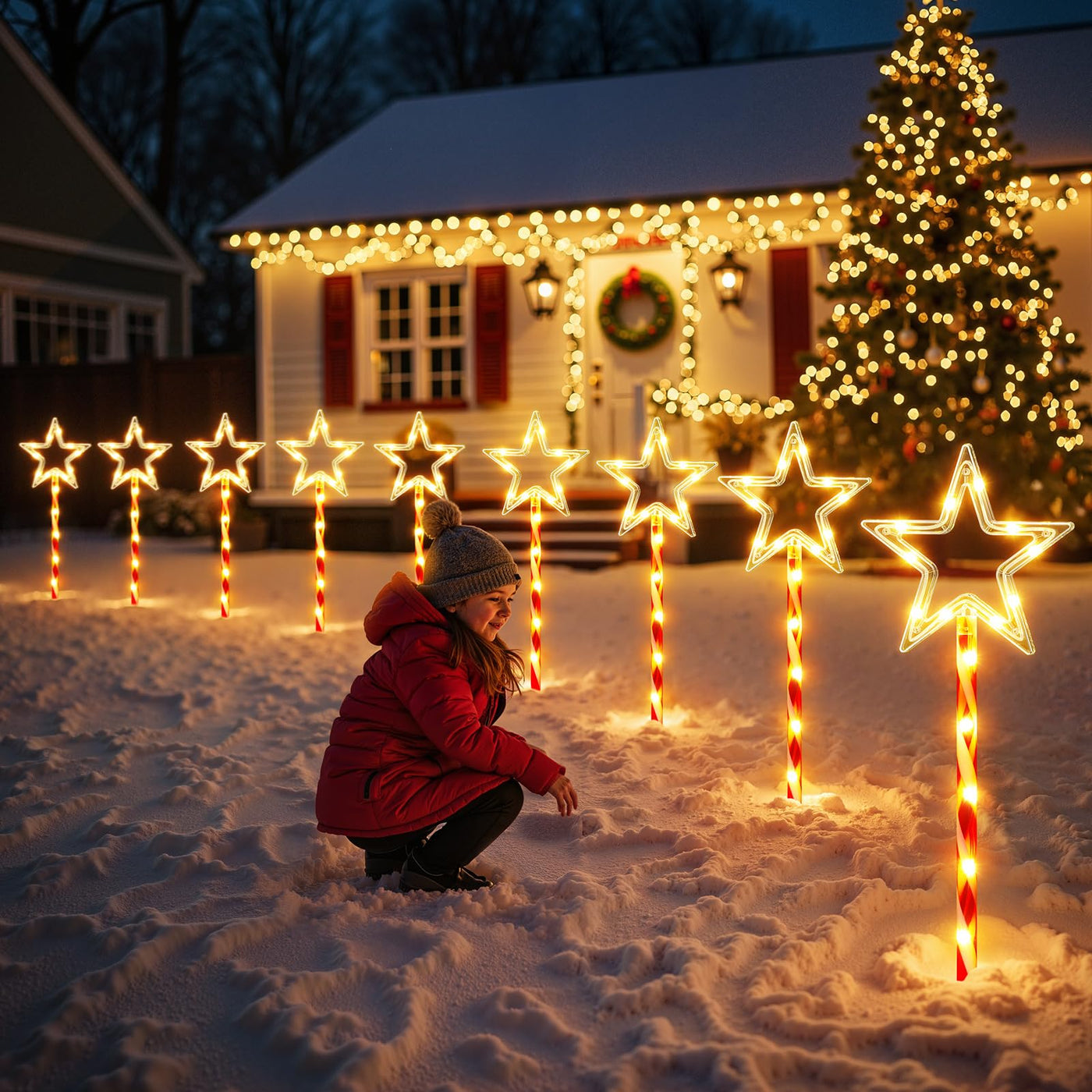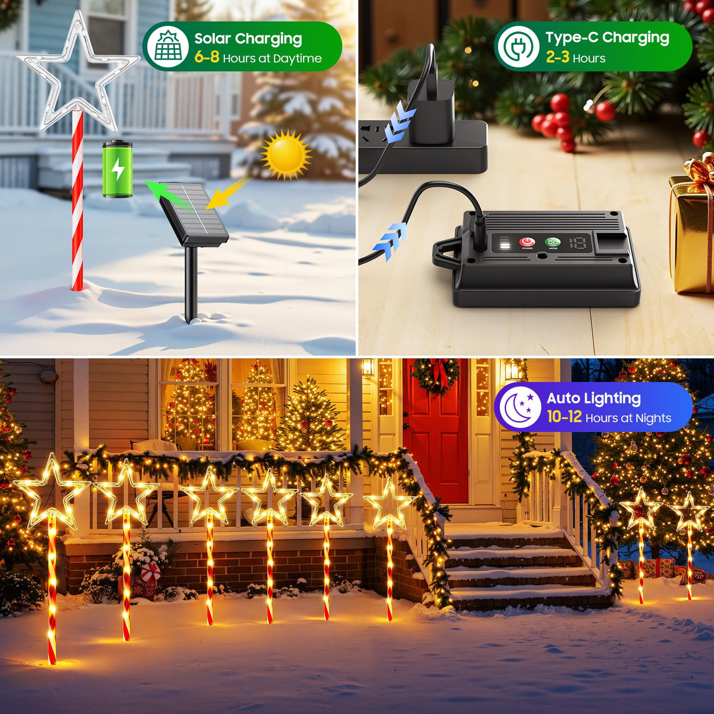 Illuminate Your Holidays With Our 12-Pack Solar Christmas Star Lights! These Large Twinkling Stars Feature 180 Ultra-Bright Warm White Leds And 10 Versatile Lighting Modes For A Custom Display. Fully Solar-Powered For Easy Cord-Free Installation They Are Weatherproof For Outdoor Use. Perfect For Lining Pathways Decorating Your Yard Or As A Unique Christmas Gift. No Outlets No Wires Just Magical Energy-Saving Ambiance.