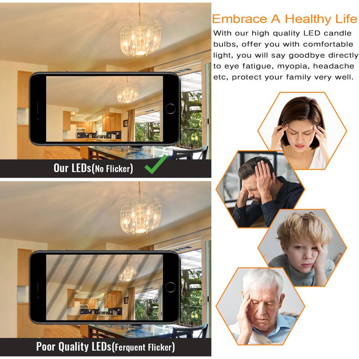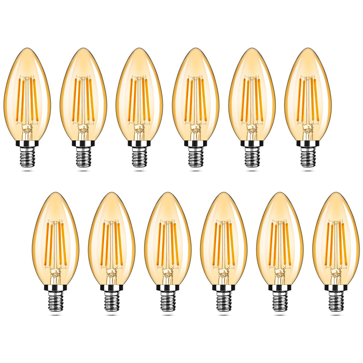 12-Pack Dimmable E12 Led Candelabra Bulbs 40Watt Equivalent, 2200K Amber Warm White, 380Lumens, 4W B11 Amber Chandelier Light Bu