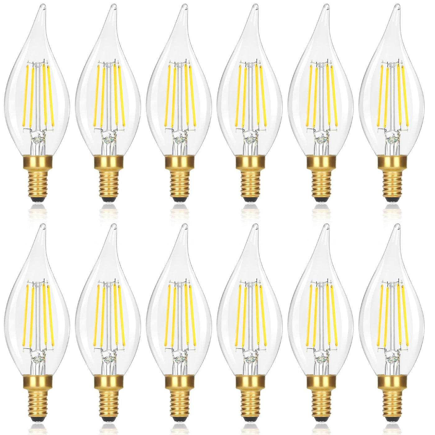 12-Pack Dimmable E12 Led Candelabra Bulbs 60 Watt Equivalent, 5000K Daylight White Dimmable Chandelier Light Bulbs, 6W 630Lm Vin