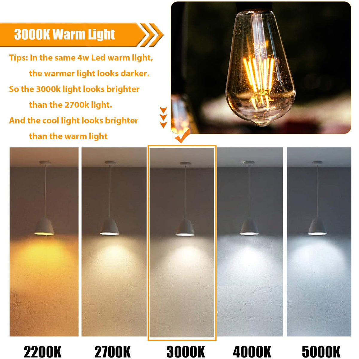12 Pack Dimmable Led Edison Bulbs 40W Equivalent,4 Watt Filament Bulb,3000K Warm White St19 Light Bulb,450Lm E26 Vintage For Cei