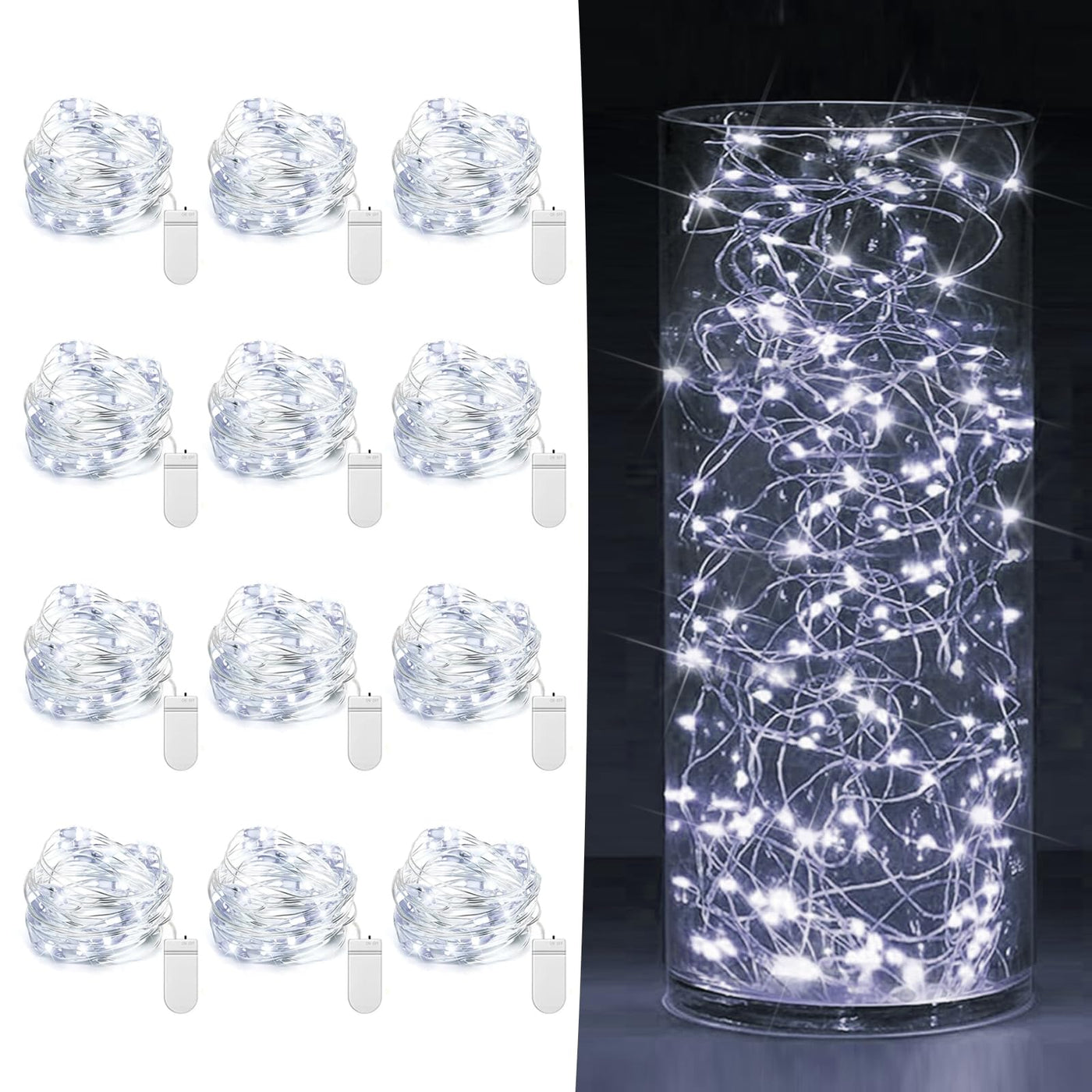 12 Pack Fairy Lights Battery Operated 7Ft 20 Led Mini String Lights Twinkle Lights Silver Wire Firefly Starry Lights For Mason Jars Wedding Party Christmas Centerpiece Table Decorations, Cool White