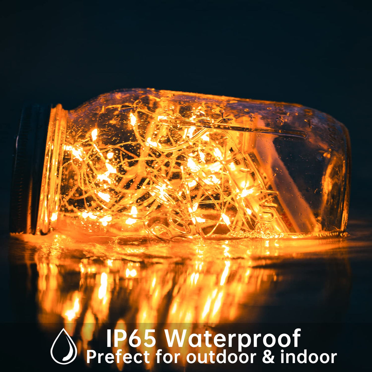 Q: Are these fairy lights suitable for outdoor use?A: Yes, the fairy lights are IP65 waterproof, allowing for outdoor use. However, please note that while the lights can be immersed in water, the battery pack is not waterproof.