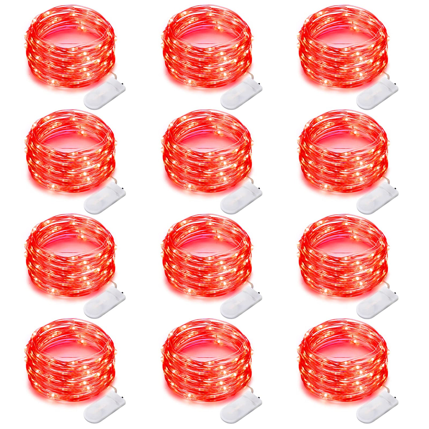 12 Pack Fairy Lights Battery Operated String Lights 7 Feet 20 Led Waterproof Christmas Lights Silver Wire Firefly Starry Moon Lights For Bedroom Red