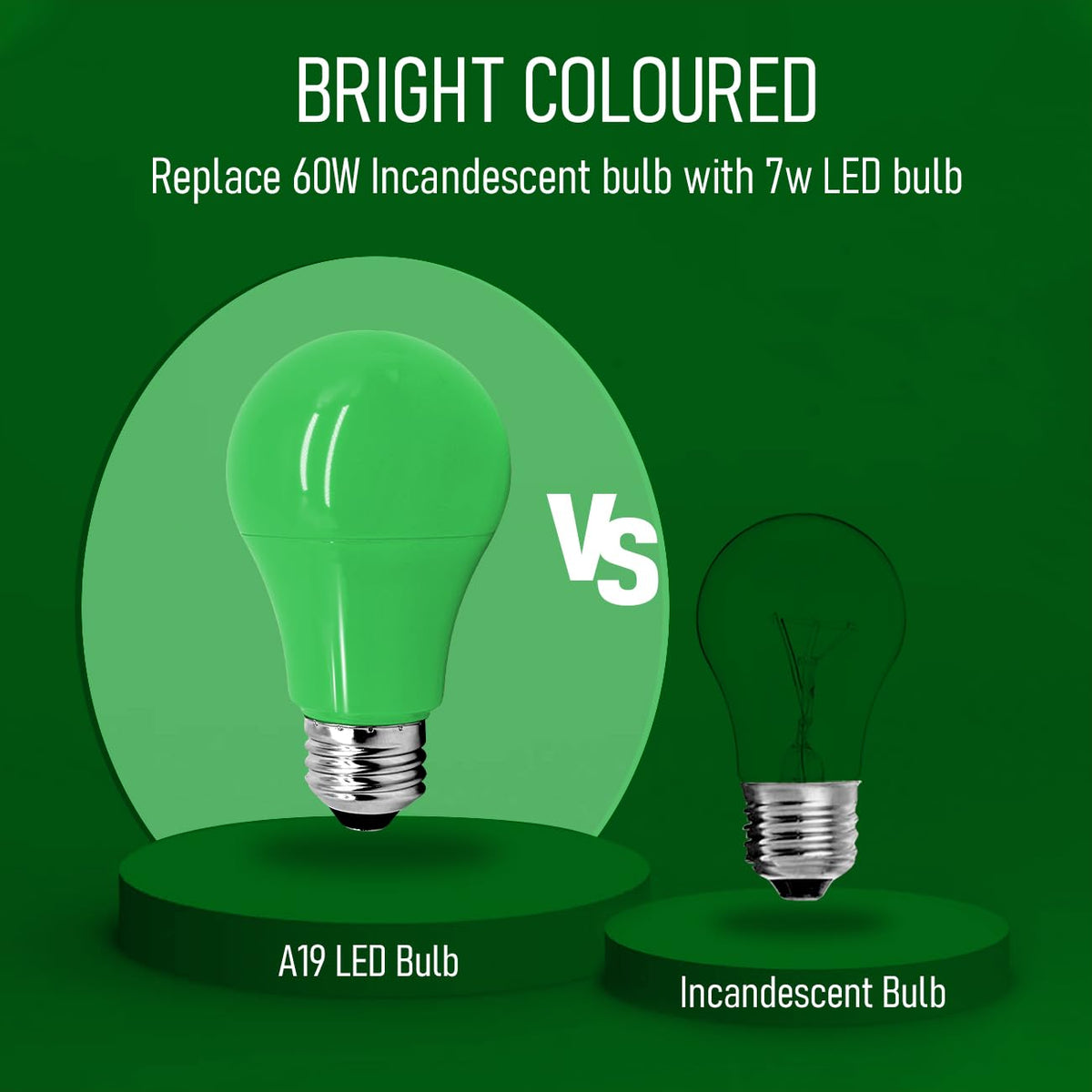 Jolux 12 Pack Green Light Bulbs A19 7W (60W Equivalent), E26 Red Led Lights For Holiday Lighting, Porch, Party, Bar Ambiance Decor, Halloween, Christmas, New Year Decor, Non-Dimmable