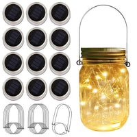 12 Pack Solar Mason Jar Lights For Outside, 30 Led Solar Mason Jar Lids Fairy Lights With 12 Hangers(No Jars) Outdoor Waterproof
