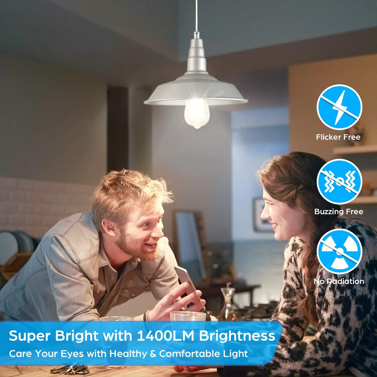 Q: What is the brightness of the 12-Pack Vintage E26 LED Edison Bulbs?A: The 12-Pack Vintage E26 LED Edison Bulbs provide an impressive brightness of 1400 lumens, equivalent to a traditional 100W incandescent bulb, while consuming only 8W of energy.