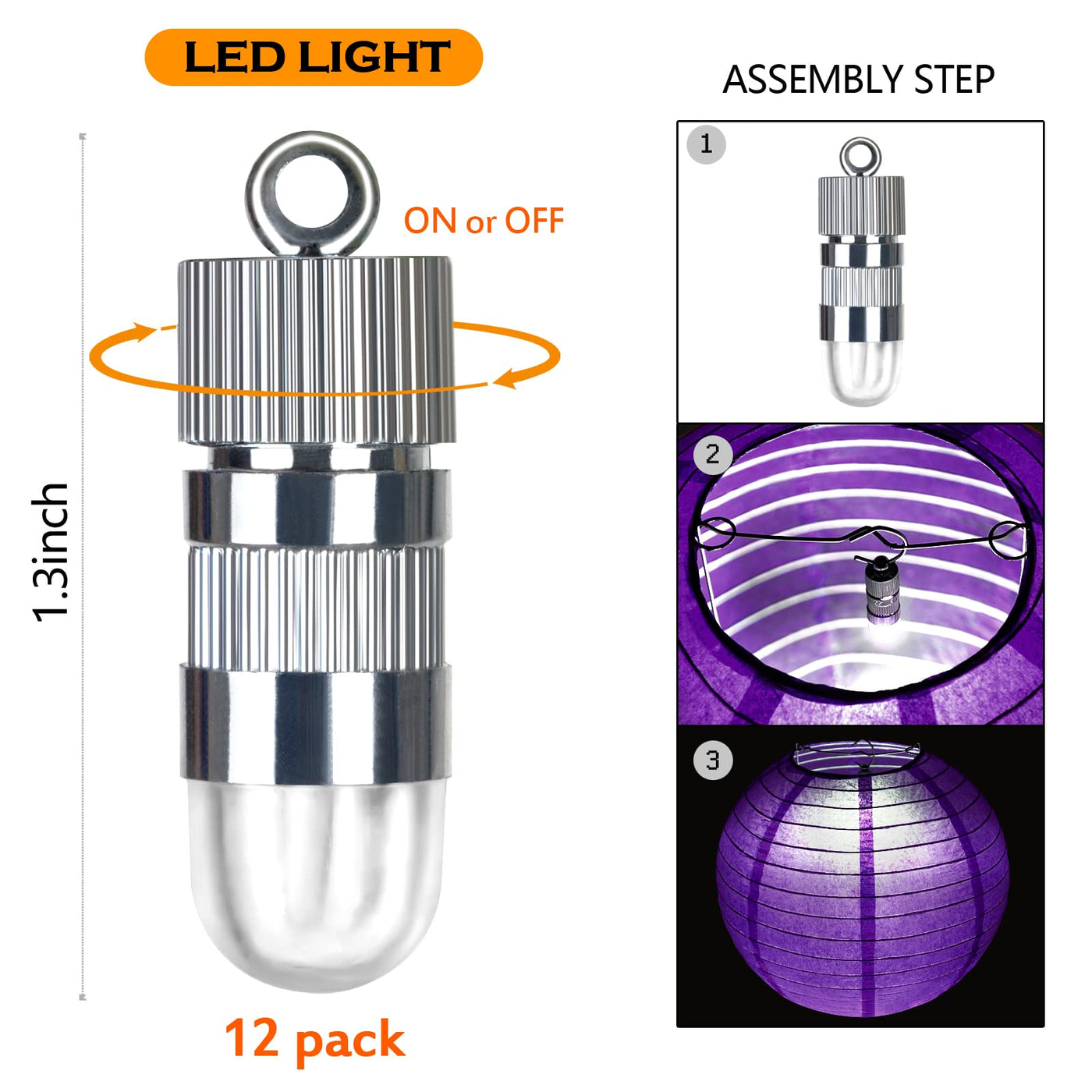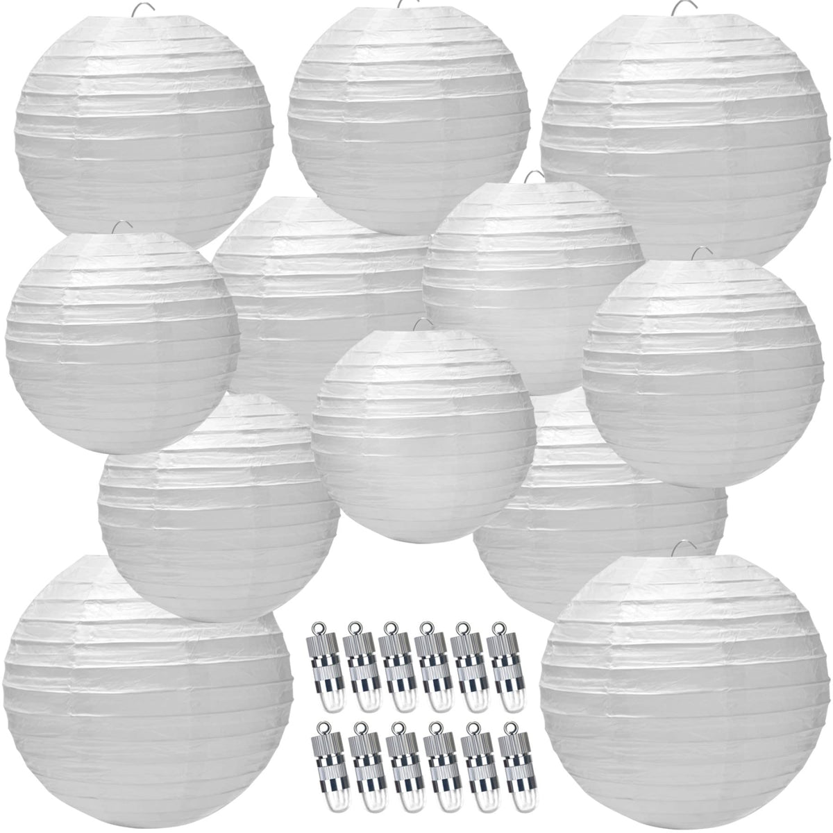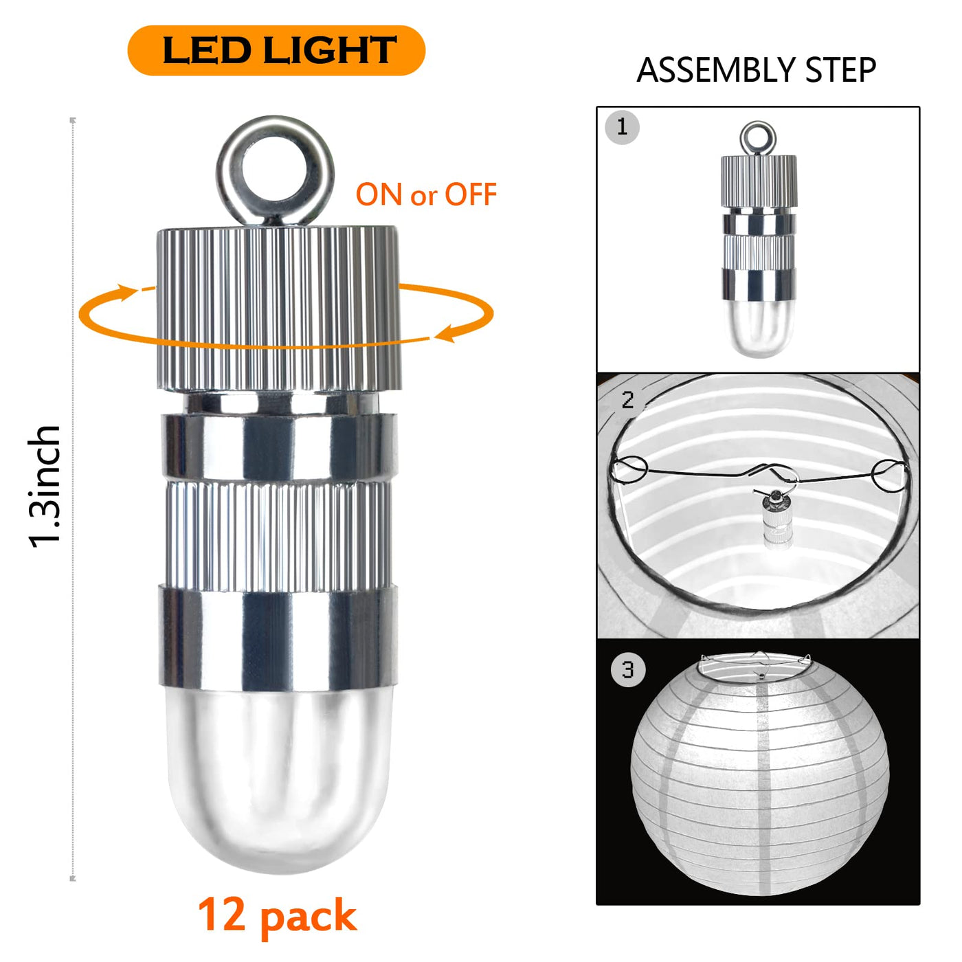 Package includes: 12 x White paper lanterns 12 x LED lantern lights