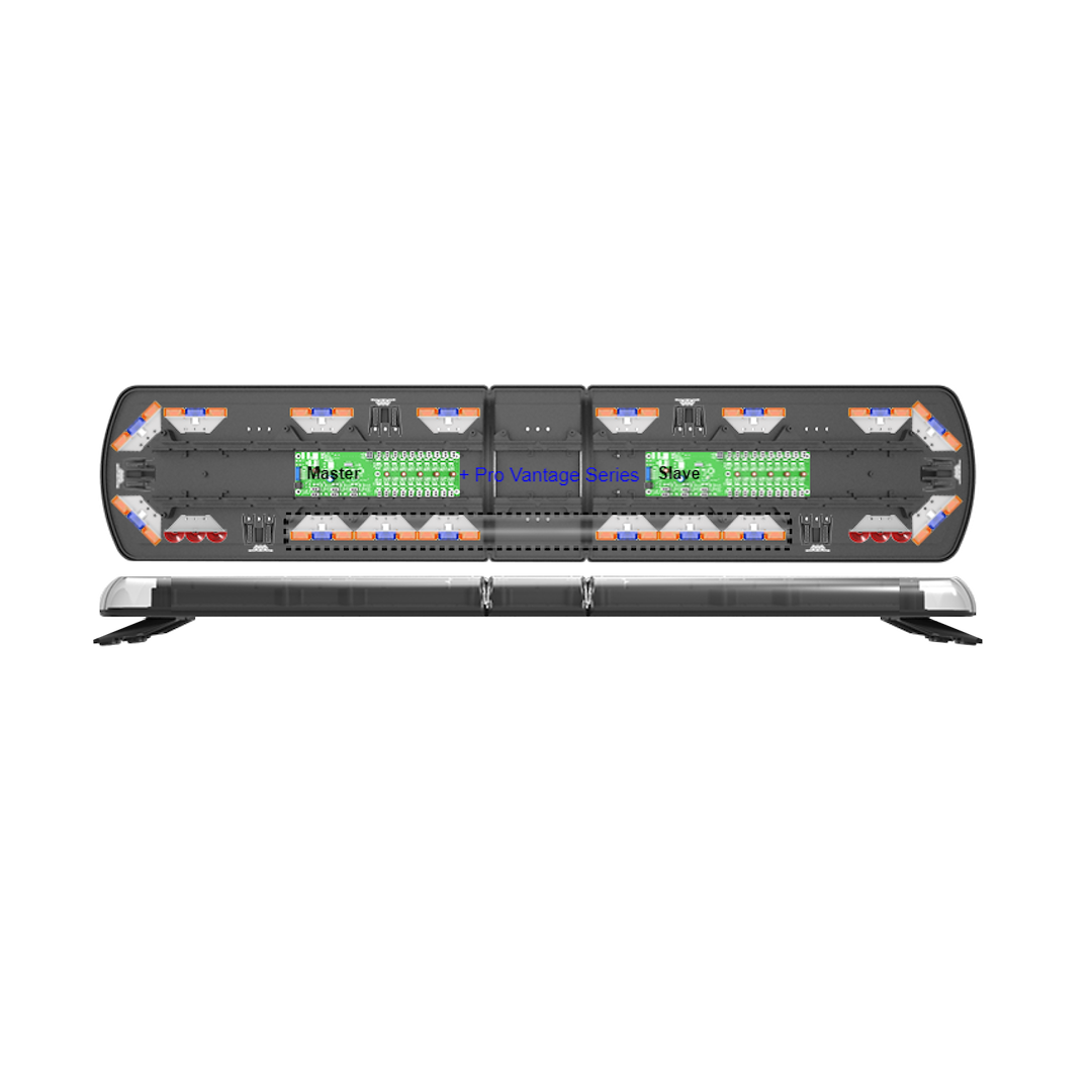 54 Inch Length x 11 Inch Width x 2-1/2 Inch Height; Full Bar; Permanent Mount/ Roof Mount; LED; Amber/ Blue Lens; 64 Flash Patterns; 12 To 24 Volt DC; With Advanced Controller/ Adjustable Feet/ STT/ Black Base