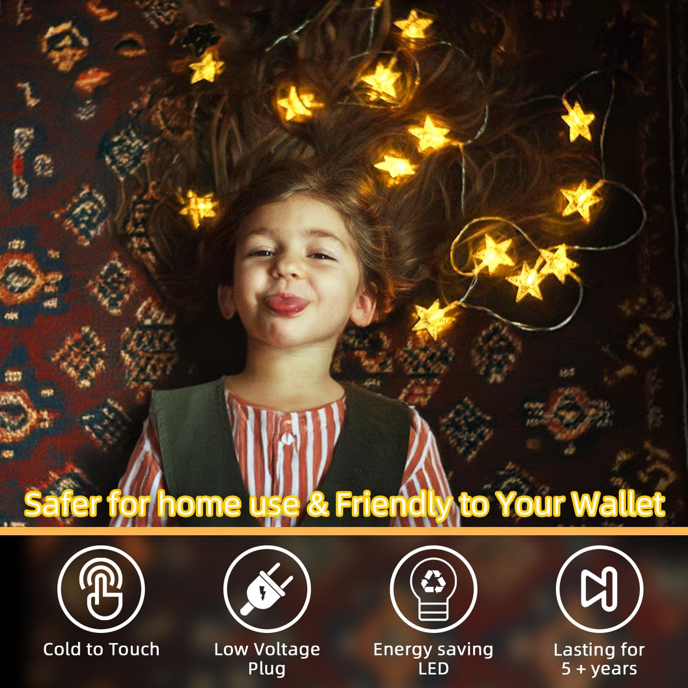 Q: Can these lights be used for special events like weddings or parties?A: Absolutely! These versatile star string lights are perfect for decorating any occasion, including weddings, birthday parties, and other celebrations. Their warm white glow and enchanting design will enhance the atmosphere beautifully.