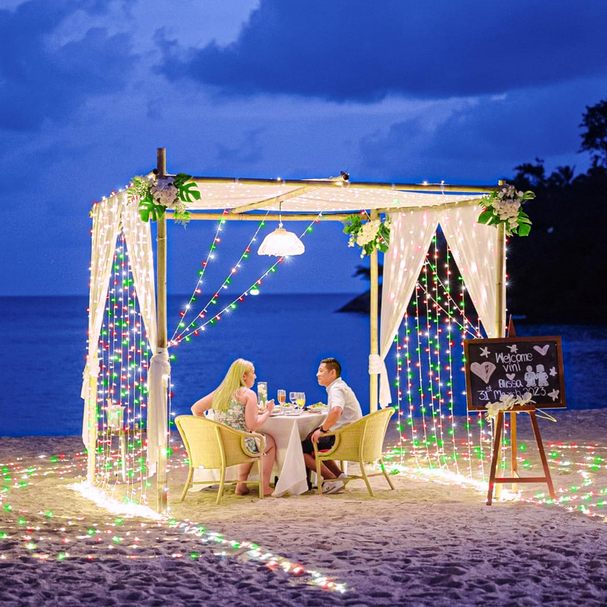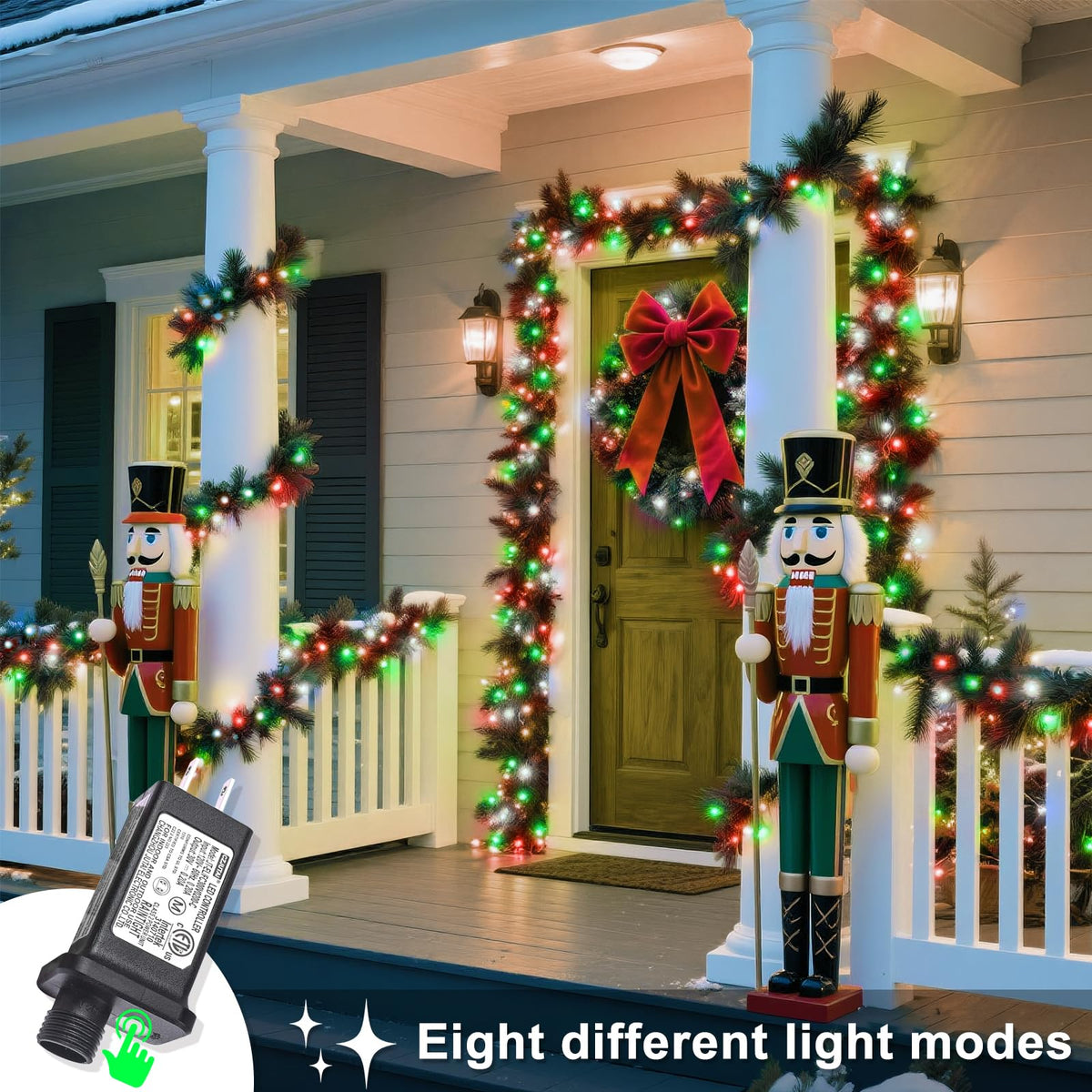 120 Led Christmas Lights Outdoor 8 Modes Plug In Waterproof Twinkle Fairy String Lights For Tree Christmas Halloween Decorations Red White&Green