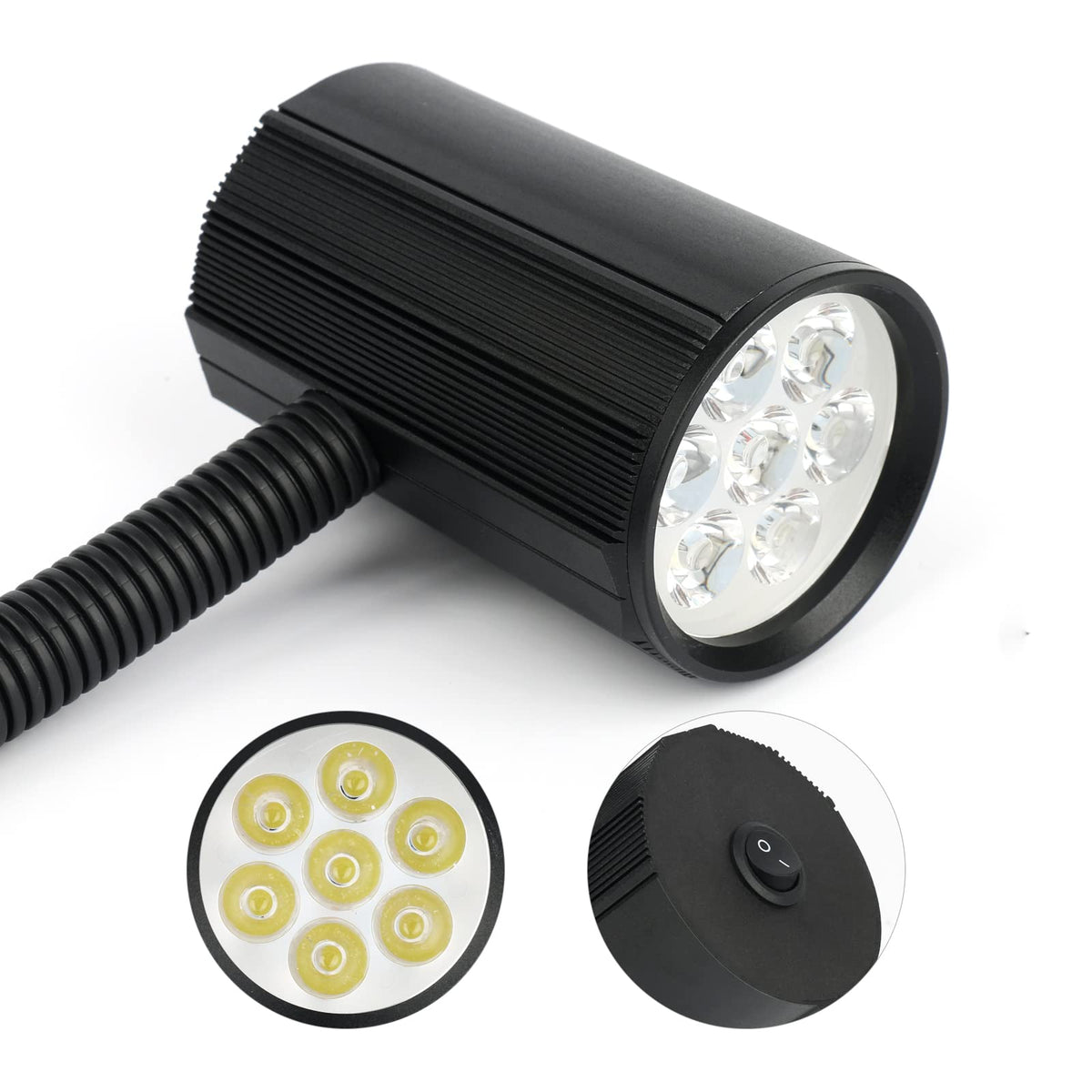 Q: What are the key features of the 120v LED machine light?A: The 120v LED machine light features high-efficiency 3030 LED chips, providing 1000 lumens of bright light while consuming only 9W. It is IP67 waterproof, designed to resist oil, water, corrosion, and oxidation. The flexible gooseneck allows for easy positioning of light, and the aluminum alloy lampshade protects against drops and impacts.